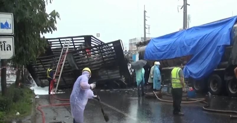 บุรีรัมย์ 29 ต.ค.- เหตุรถบรรทุกน้ำมันพุ่งชนรถพ่วงบริเวณสี่แยก อ.หนองกี่ จ.บุรีรัมย์ เมื่อคืนที่ผ่านมา คาดไม่เกินเที่ยงวันนี้จะสามารถเคลื่อนย้ายซากรถออกได้