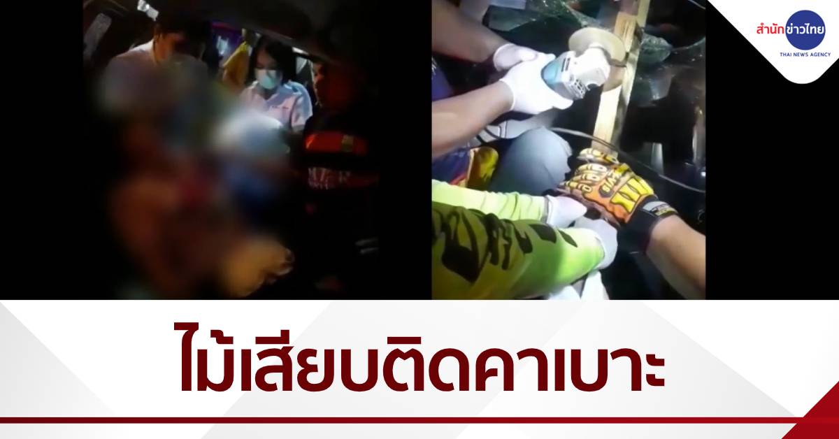 วินาทีเจ้าหน้าที่ช่วยกันใช้เลื่อยไฟฟ้า เลื่อยไม้ความยาวประมาณ 3 เมตร ที่เสียบคาอยู่หน้าท้อง ทะลุหลัง น.ส.สุธิดา คำฤทธิ์ อายุ 22 ปี ซึ่งนั่งอยู่ภายในรถกระบะเบาะหน้าข้างคนขับ โดยไม้ท่อนนั้นยังทะลุออกไปด้านหลังเบาะอีก 10 เซนติเมตร เจ้าหน้าที่ต้องช่วยกันเลื่อยท่อนไม้ให้เหลือสั้นที่สุด เพื่อที่จะได้นำร่างผู้บาดเจ็บส่งโรงพยาบาล เพื่อโดยเธอเองก็ร้องด้วยความเจ็บปวดตลอดเวลา