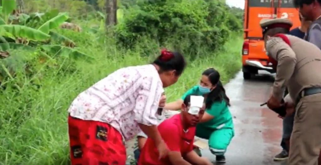 กระบะวิ่งฝ่าสายฝนด้วยความเร็ว ก่อนหลุดโค้ง พลิกคว่ำ บนถนนสุขุมวิท ช่วงหลักกิโลเมตร 251-252 หมู่ 7 ตำบลชากพง อำเภอแกลง จังหวัดระยอง ส่งผลให้นายสุวัฒน์ บริบูรณ์ อายุ 35 ปี และนางสาวภาวินี บริบูรณ์ อายุ 33 ปี 2 พี่น้อง ที่นั่งมาด้วยกัน บาดเจ็บที่ศีรษะมีแผลแตก กู้ภัยช่วยปฐมพยาบาลก่อนรีบนำส่งโรงพยาบาลแกลง