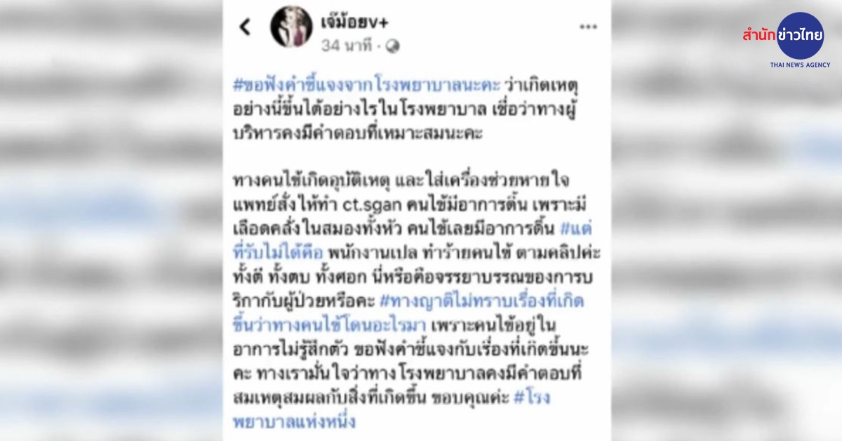 หลังจากคลิปและข้อความถูกโพสต์เผยแพร่ออกไป มีคนเข้ามากดแชร์และต่างวิพากษ์วิจารณ์เป็นจำนวนมาก ขณะที่หลายฝ่ายยังรอดูเหตุการณ์ว่า ทางโรงพยาบาลฯ จะชี้แจงอย่างไร. – สำนักข่าวไทย