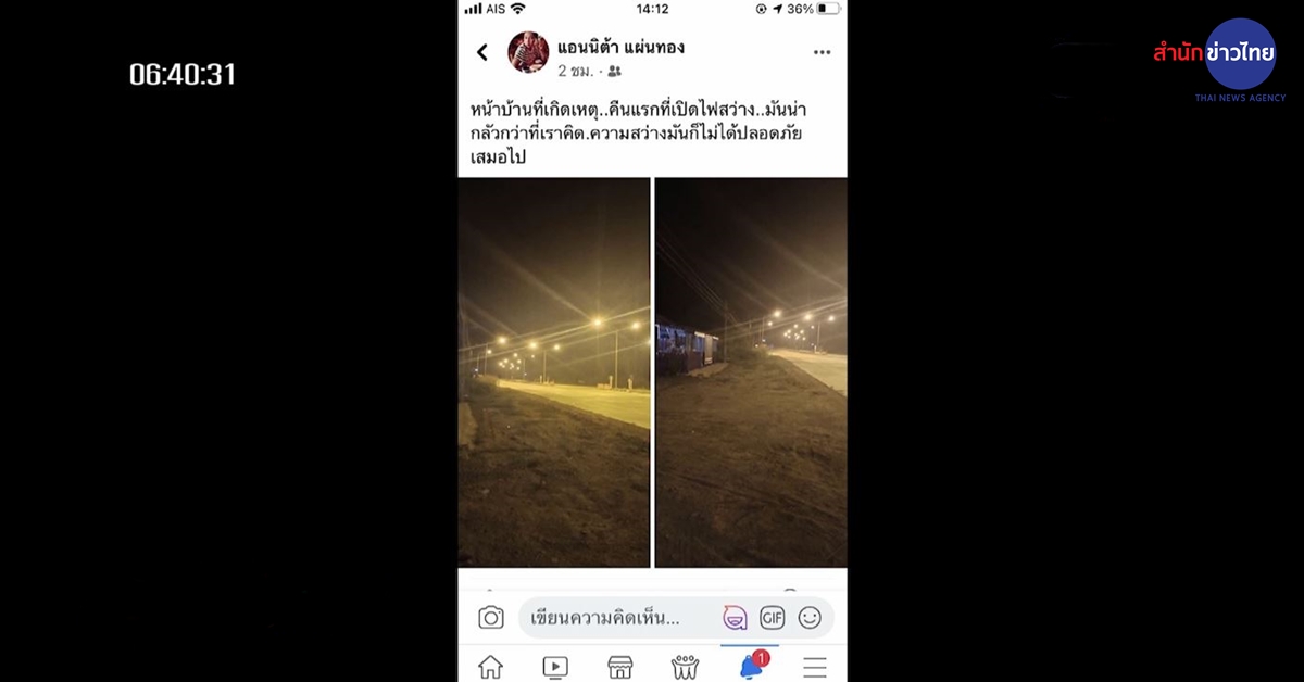 มีผู้ใช้เฟซบุ๊กที่ใช้ชื่อว่า “แอนนิต้า แผ่นทอง” โพสต์รูปภาพ จำนวน 2 ภาพ ซึ่งเป็นบริเวณหน้าบ้านของตนเอง พร้อมข้อความว่า “หน้าบ้านที่เกิดเหตุ คืนแรกที่เปิดไฟสว่าง มันน่ากลัวกว่าที่เราคิด ความสว่างมันก็ไม่ได้ปลอดภัยเสมอไป” และในเวลาต่อมาได้โพสต์เพิ่มอีกข้อความว่า “ความสว่างก็ไม่ได้ช่วยอะไรเลย เกือบซวยไม่ล่ะกู”