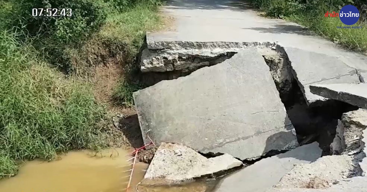 ชาวบ้าน ต.ตลุก อ.สรรพยา จ.ชัยนาท เดือดร้อนอย่างหนัก เพราะถนนสายข้างศูนย์พัฒนาเด็กเล็กบ้านหนอง เส้นทางเชื่อมต่อระหว่างหมู่ที่ 8 และหมู่ที่ 9 ซึ่งเป็นถนนคอนกรีต กว้าง 4 เมตร ยาว 800 เมตร ที่กั้นระหว่างสระเก็บน้ำวัดบ้านหนอง กับลำน้ำธรรมชาติบ้านหนอง ทรุดตัวและพังถล่มลงไปในลำน้ำบ้านหนอง เป็นทางยาวกว่า 6 เมตร ลึกกว่า 2 เมตร ทำให้ถนนขาด ชาวบ้านต้องเลี่ยงไปใช้เส้นทางอื่น เพราะเกรงอันตราย โดยเฉพาะเด็กเล็กและเด็กนักเรียนต้องเดินอ้อมไปไกลขึ้น