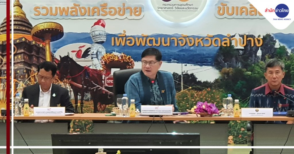 ลำปาง 13 พ.ย.- “เอนก” ตั้ง อว.ส่วนหน้าลำปาง ทำหน้าที่ม้าเร็วนำองค์ความรู้ นวัตกรรม เทคโนโลยี สนับสนุนการขับเคลื่อนโครงการของจังหวัด พร้อมเสนอตั้งหอการศึกษาลำปาง ถ่ายทอดศาสตร์ความรู้เฉพาะของท้องถิ่น