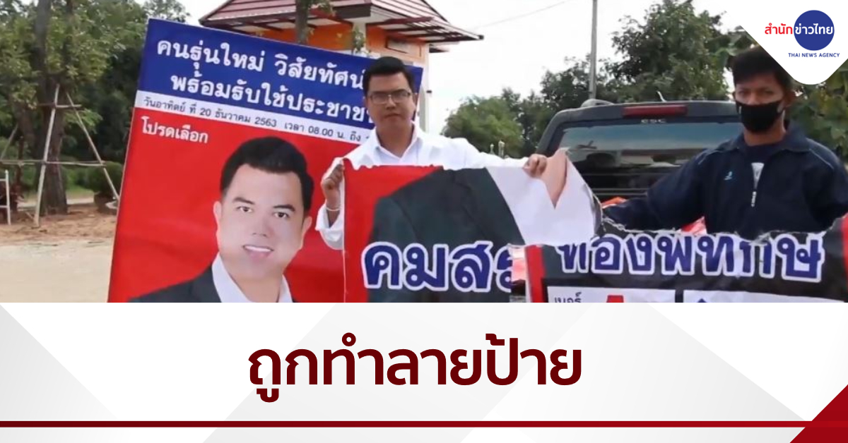 นายคมสันต์ ทองพิทักษ์ ผู้สมัคร ส.อบจ.ขอนแก่น เขต 1 นำป้ายหาเสียง 2 ป้าย ที่ถูกทำลายจนเสียหาย มาลงบันทึกประจำวันไว้เป็นหลักฐานที่ สภ.บ้านเป็ด ก่อนเปิดเผยว่า ติดตั้งป้ายหาเสียงผู้สมัคร ส.อบจ.ขอนแก่น เขต 1 ไปแล้วกว่า 80 ป้าย ตั้งแต่วันที่ 8 พฤศจิกายนที่ผ่านมา และมาพบว่าป้ายหาเสียงถูกทำลายและสูญหายเมื่อวันที่ 14 พฤศจิกายน ล่าสุดที่พบคือบริเวณทางเข้าค่ายสีหราชเดโชชัย และหน้าห้างไพรัช ถนนมะลิวัลย์ ต.บ้านเป็ด ซึ่งยังไม่ยืนยันว่าเป็นฝีมือของใคร จึงเดินทางมาลงบันทึกประจำวันไว้เป็นหลักฐาน เพราะเกรงว่าป้ายหาเสียงของตนเองจะถูกทำลายอีก และกังวลว่าเมื่อถึงวันก่อนเลือกตั้ง ซึ่งทีมงานเก็บป้ายหาเสียงไปหมดแล้ว ผู้ไม่หวังดีเอาป้ายที่ขโมยป้ายไปกลับมาตั้ง จะทำให้กลายเป็นป้ายหาเสียงเกิน ซึ่งจะส่งผลกับสิทธิของผู้สมัคร.-สำนักข่าวไทย