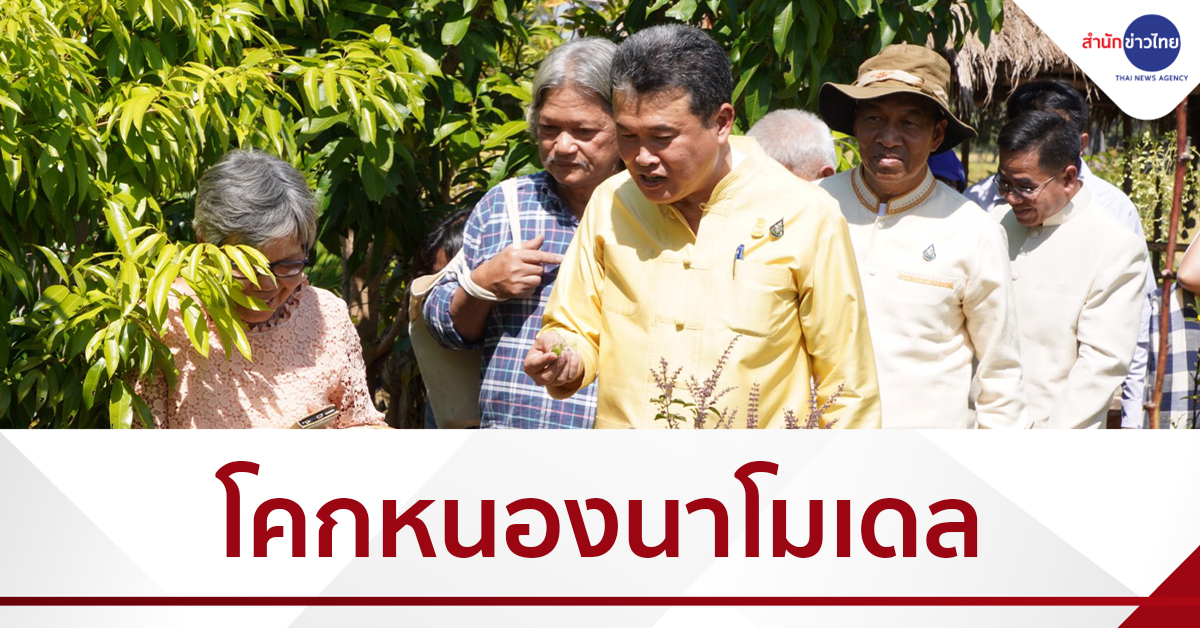 นายเอ็นนู ซื่อสุวรรณ กล่าวว่า การลงพื้นที่ครั้งนี้ไม่ได้มาจับผิดแต่อย่างใด เป็นการมาเพื่อแลกเปลี่ยนและให้คำแนะนำในการดำเนินงาน ให้ประสบผลสำเร็จ บรรลุวัตถุประสงค์ที่รัฐบาลตั้งเป้าไว้ สภาพัฒน์ฯ ได้ตั้งคณะอนุกรรมการติดตามโครงการ ถือเป็นครั้งแรก เนื่องจากโครงการนี้มันไม่ใช่โครงการงบประมาณปกติ เป็นโครงการที่ขอจากงบเงินกู้ 4 แสนล้าน โครงการของกระทรวงเกษตรฯ และโครงการของกระทรวงมหาดไทย รวมเป็น 2 โครงการแรกที่ทางสภาพัฒน์อนุมัติ รวมแล้ว 1.4 หมื่นล้านบาท เราเป็นกังวลว่า โครงการนี้เป็นโครงการที่ดีมีประโยขน์ต่อพี่น้องประชาชนถ้าไม่มีการติดตามดูแลให้ถูกต้องเหมาะสม ก็จะละลายหายไปแล้วจะถูกโจมตี เพราะเป็นโครงการเงินกู้ที่รัฐบาลต้องจ่ายดอกเบี้ย จะกลายเป็นสร้างปัญหาเพิ่มเติม ต้องทำแล้วคุ้มค่า เราจึงมีความเป็นกังวลว่าบุคคลที่เกี่ยวข้องมีความเข้าใจตรงกันหรือไม่ เพราะพื้นที่บางพื้นที่ก็จะมีทั้งผู้ที่เคยมีประสบการณ์และไม่มีประสบการณ์ ถ้าเจ้าหน้าที่ ประชาชน เกษตรกรไม่มีประสบการณ์ถือว่าอันตราย และระยะเวลาสั้นมาก 12 เดือน ถือเป็นเรื่องสำคัญ เราจะทำอย่างไรให้โครงการประสบความสำเร็จได้ จึงได้ตั้งคณะอนุกรรมการขึ้นมาติดตามตั้งแต่เริ่มต้นเพื่อจูนความคิดความเข้าใจให้ตรงกัน ซึ่งในที่ประชุมได้เห็นตรงกันว่าต้องมีการลงพื้นที่ติดตามงานเพื่อดูพื้นที่จริง เป็นการปรับจูนเพื่อให้ข้าราชการทำงานร่วมกับประชาชนได้ตามสภาพภูมิประเทศที่เหมาะสม ดังนั้น ในการทำงานถ้ามีอะไรติดขัดต้องบอกอย่าไปปกปิดเอาไว้ เป็นเรื่องที่ต้องจูนเข้าหากัน ไม่ว่าจะเป็นเกษตรทฤษฎีใหม่ หรือ โคก หนอง นา โมเดล ก็ถือเป็นศาสตร์พระราชา ซึ่งถือว่าเป็นเรื่องเดียวกัน แตกต่างกันที่รูปแบบการทำงานเท่านั้น ซึ่งอยู่ในพื้นที่เดียวกัน ดังนั้นผมก็อยากฝากทางเกษตรจังหวัด ทางพัฒนาการจังหวัด ให้ไปร่วมกัน แลกเปลี่ยนความคิดซึ่งกันและกัน เพราะเป็นเรื่องยากสำหรับหน่วยใดหน่วยหนึ่ง ต้องช่วยกัน ร่วมมือกัน ยิ่งเป็นยุคโควิด ปัญหาเยอะไปหมด เราต้องช่วยกันคิดช่วยกันทำประเทศไทยถึงจะอยู่รอด เพราะ 2 โครงการนี้ถือเป็นศาสตร์พระราชา ทำให้เราต้องพึ่งพาตนเองอย่าไปพึ่งพาต่างชาติ อย่างการปลูกผัก ปลูกกินเอง ขายเอง หรือนำมาแปรรูปทำเป็นสลัดใส่กล่องขาย ทำเป็นอาหารสำเร็จรูปแล้วขายผมมั่นใจว่าจะขายได้ราคาดี