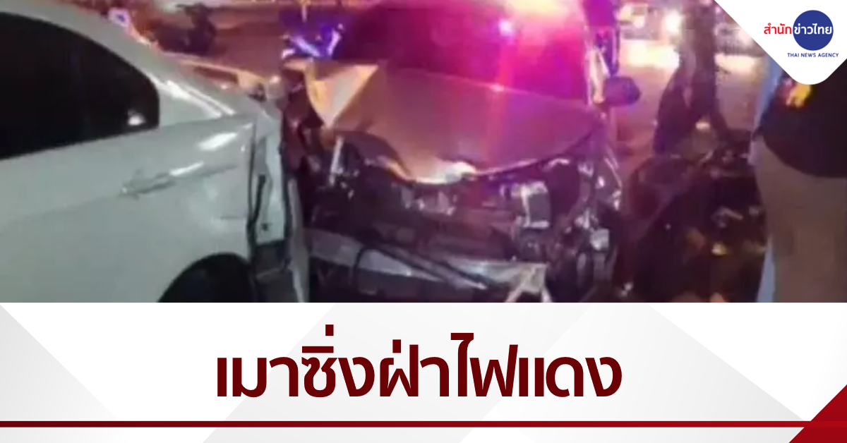 ชลบุรี 17 พ.ย.- หนุ่มเมาซิ่งเก๋งฝ่าไฟแดงชนเก๋งอีกคันกระเด็นฟาด จยย.ริมทางเจ็บ