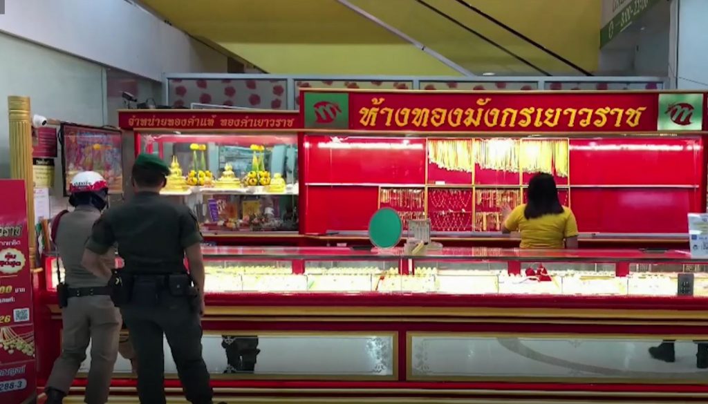 ด้านนางสาวมุนิล ศรีนกร้อย พนักงานร้านทอง ให้ข้อมูลว่า คนร้ายไม่ได้พกอาวุธมา เนื่องจากทำทีเป็นลูกค้าเข้ามาถามว่า ราคาทองวันนี้สลึงละเท่าไหร่ ร้านจึงบอกว่า ประมาณ 7,300 บาท เป็นราคาโปรโมชั่น จากนั้นคนร้ายได้ขอลองแหวน และทำทีขอดูอีกลาย ก่อนฉวยโอกาสวิ่งหนีไป โดยมีคนเห็นว่าแมสก์ร่วงขณะหนี และมาคนเดียว อย่างไรก็ตาม เชื่อว่าหากเห็นหน้าอีกครั้งจำได้แน่ เพราะขณะขอลองแหวนก็ค่อนข้างเห็นหน้าชัด.-สำนักข่าวไทย