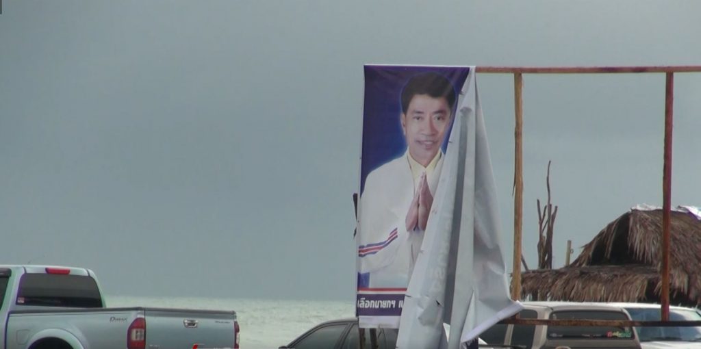ที่สงขลา หลังจากมีการสมัครและรับรองคุณสมบัติผู้สมัครทั้งหมด รวม 108 คน ในจำนวนนี้เป็นผู้สมัคร นายก อบจ. 6 คน แต่ละทีมได้มีการติดแผ่นป้ายหาเสียงกันอย่างคึกคัก ผู้สื่อข่าวลาดตระเวนตรวจสอบดูพบว่า มีแผ่นป้ายหาเสียงของทีมสงขลาประชารัฐ ในเขตเลือกตั้งที่ 2 อำเภอเมืองสงขลา มีลักษณะขาดออกจากกัน เหมือนถูกกรีด ริมถนนชลาทัศน์ บริเวณชายหาด ใกล้ชุมชนเก้าเส้ง โดยในเขตเลือกตั้งนี้ มีผู้สมัคร รวม 2 คน คือ นายวิสิทธิ์ และ และนายศิริชัย เอกพันธ์ จากทีมประชาธิปัตย์