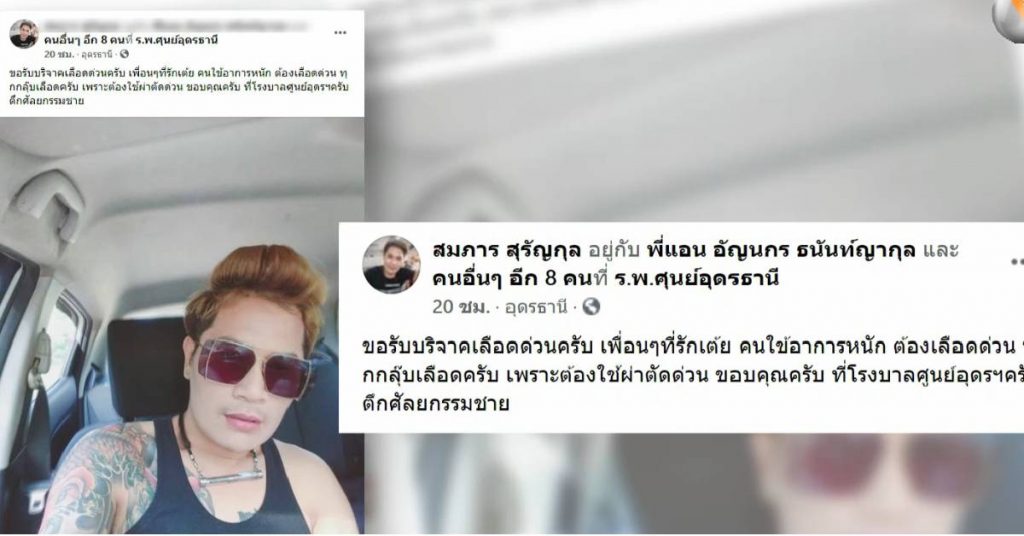 ย้อนกลับไปเมื่อวันที่ 19 พฤศจิกายน 2563 ที่ผ่านมา เฟซบุ๊ก “สมภาร สุรัญกุล” ซึ่งเป็นเฟซบุ๊กของ เสี่ยเต้ย ได้โพสต์เมื่อเวลา 19.08 น. ระบุ “ขอรับบริจาคเลือด เพื่อผ่าตัดด่วน”
