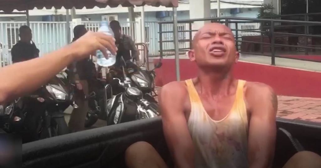 ภาพเหตุการณ์ขณะชายคนหนึ่งอาละวาด รื้อทำลายเครื่องเซ่นไหว้ที่ศาลพระภูมิ ใน สภ.หาดใหญ่ รวมทั้งขว้างปาสิ่งของ ก่อนวิ่งหนีออกไปทางชุมชนด้านหลัง แต่ถูกเจ้าหน้าที่ใช้เหล็ก 2 ง่ามบุกเข้าชาร์จ ควบคุมตัวเอาไว้ได้อย่างทะลักทุเล เนื่องจากชายคนนี้พยายามดิ้นหนี ส่งเสียงร้อง ต่อว่าตำรวจตลอดเวลา แต่สุดท้ายก็ควบคุมตัวไว้ได้ และพาไปสงบสติอารมณ์ที่ สภ.หาดใหญ่ ตรวจสอบบัตรประชาชนทราบชื่อ พระลัดฟ้า อังคารธรรม ชาวบางกล่ำ จ.สงขลา บวชมา 2 พรรษาและเพิ่งสึกออกมา ส่วนสาเหตุเพราะมาตามทวงมีดที่ถูกตำรวจยึดมา 3 เล่ม แต่ตำรวจไม่ให้ เพราะเป็นของกลาง จึงโมโห และก่อเหตุดังกล่าวขึ้น หลังสงบสติอารมณ์แล้ว ตำรวจได้แจ้งดำเนินคดี 3 ข้อหาคือ พกพาอาวุธมีดฯ, ทำตัววุ่นวายและดูหมิ่นเจ้าหน้าที่.-สำนักข่าวไทย