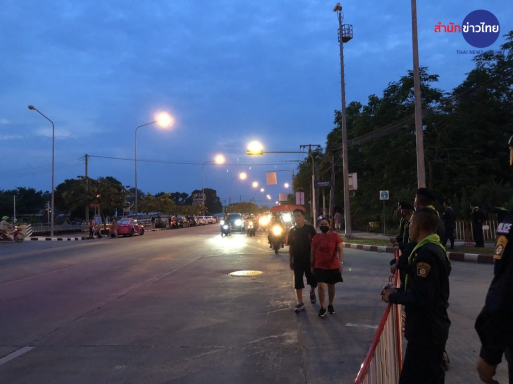 นครปฐม 22 พ.ย.-ประชาชนทยอยร่วมกิจกรรมชุมนุมของกลุ่มภาคีนักศึกษาศาลายา บริเวณถนนอุทยาน จ.นครปฐม ด้านเจ้าหน้าที่ปิดถนนอุทยาน คัดกรองเข้า-ออก ทางเดียว