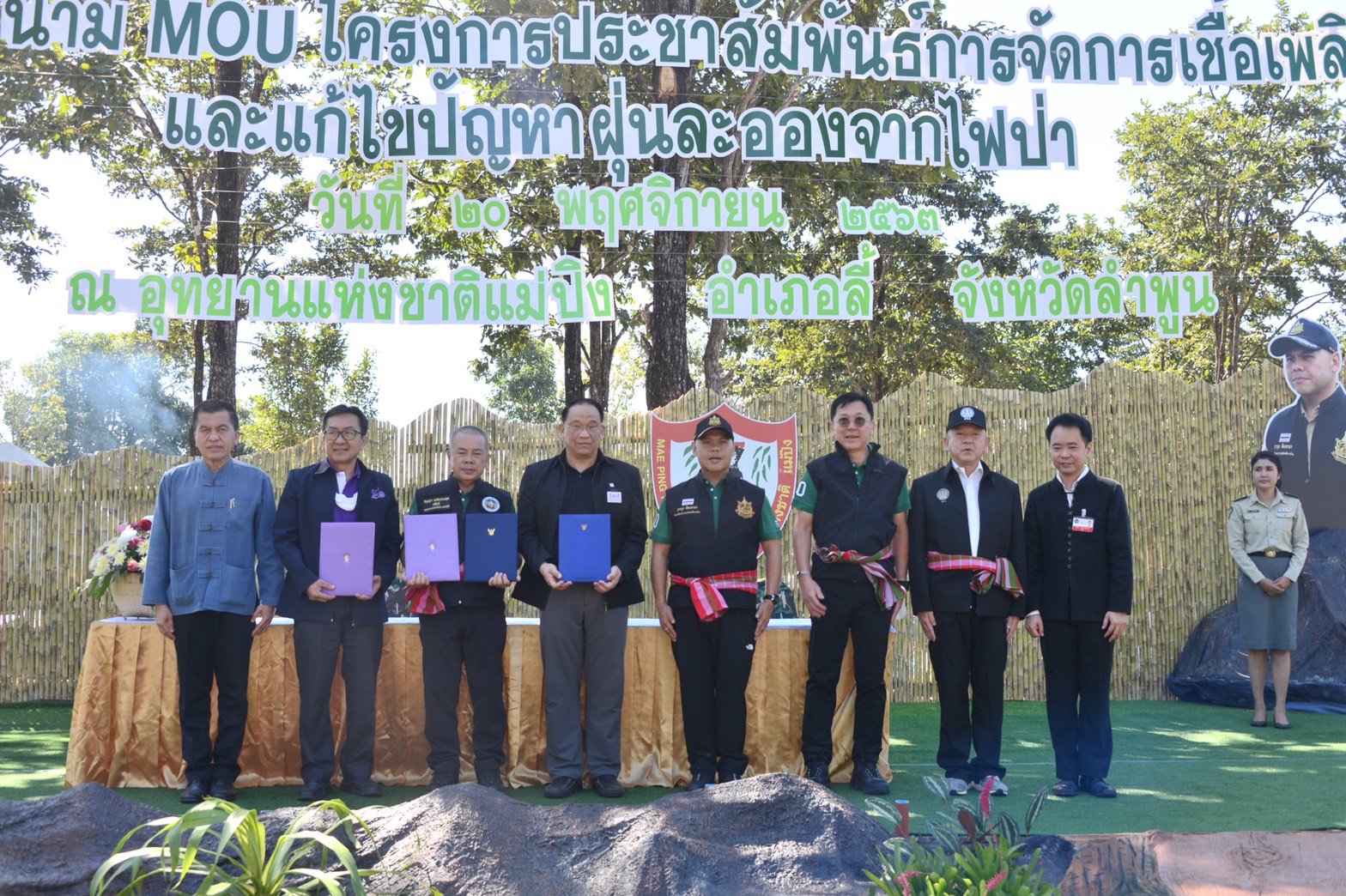 ต่อมา รมว.ทส. ได้เดินทางมายังหน่วยพิทักษ์อุทยานแห่งชาติแม่ปิงที่ 3 (ทุ่งกิ๊ก) อุทยานแห่งชาติแม่ปิง อ.ลี้ จ.ลำพูนเป็นประธานเปิดโครงการประชาสัมพันธ์การจัดการเชื้อเพลิงและแก้ไขปัญหาฝุ่นละอองจากไฟป่า พร้อมเป็นประธานในพิธีลงนาม MOU ระหว่างกรมอุทยานแห่งชาติ สัตว์ป่า และพันธุ์พืช มหาวิทยาลัยเชียงใหม่ และชมรมผู้รับพระราชทานทุนมูลนิธิอานันทมหิดล เพื่อพัฒนาการท่องเที่ยวเชิงอนุรักษ์ในพื้นที่อุทยานแห่งชาติแม่ปิง และอุทยานแห่งชาติศรีลานนา โดยรัฐมนตรีว่าการกระทรวงทรัพยากรธรรมชาติและสิ่งแวดล้อม นำคณะผู้บริหารกระทรวงฯลงพื้นที่ตรวจติดตามการปฏิบัติงานของหน่วยงานในสังกัดกระทรวงฯ อีกทั้งได้มอบบ้านในโครงการซ่อมแซมบ้านผู้พิทักษ์ จำนวน 2 หลังให้แก่เจ้าหน้าที่อุทยานแห่งชาติศรีลานนา ซึ่งประสบเหตุวาตภัยในห้วงเวลาที่ผ่านมา และเยี่ยมชมกิจกรรมการบริหารจัดการเชื้อเพลิงของเครือข่ายหน่วยงานในสังกัดกระทรวงฯ ชมรมผู้รับพระราชทานทุนอานันทมหิดล มหาวิทยาลัยแม่โจ้ และจิตอาสาแก้ปัญหาไฟป่าจังหวัดลำพูน