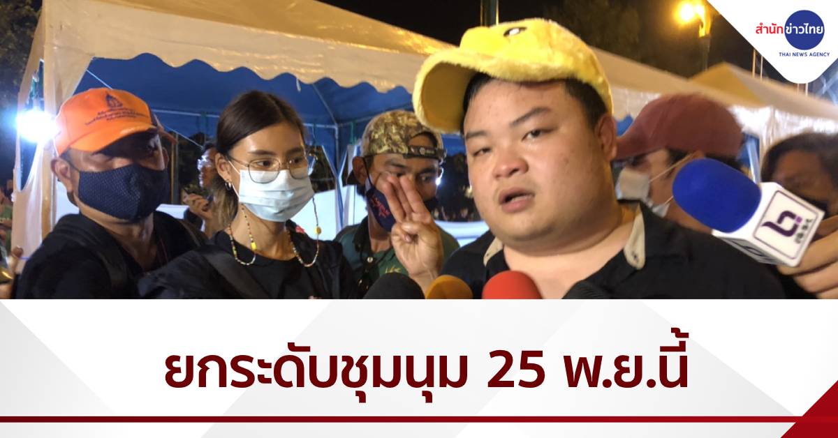 นายพริษฐ์ ชิวารักษ์ หรือเพนกวิน ยืนยัน 25 พฤศจิกายนนี้ จะเป็นวันแรกยกระดับการชุมนุม ดุเดือดและจริงจัง ซึ่งจะเป็นบิ๊กเซอร์ไพร์ส แต่ยังไม่ขอเปิดเผยรายละเอียด ส่วนกรณีมีกระแสข่าวว่าจะมีกลุ่มคนเสื้อเหลืองมาจัดกิจกรรมในวันที่ 25 พฤศจิกายนนั้น เชื่อในแนวทางสันติวิธีของทางกลุ่มที่จะลดการเผชิญหน้าและความขัดแย้งได้ ซึ่งทางมวลชนจะลดการเผชิญหน้าและความขัดแย้งด้วยเช่นกัน และหากกลุ่มคนเสื้อเหลืองจะจัดกิจกรรมคู่ขนานก็ขออย่าใช้ความรุนแรง พร้อมเรียกร้องให้ตำรวจปฏิบัติหน้าที่ของตนเองในการปกป้อง เฝ้าระวังไม่ให้เกิดเหตุการณ์เผชิญหน้ากัน