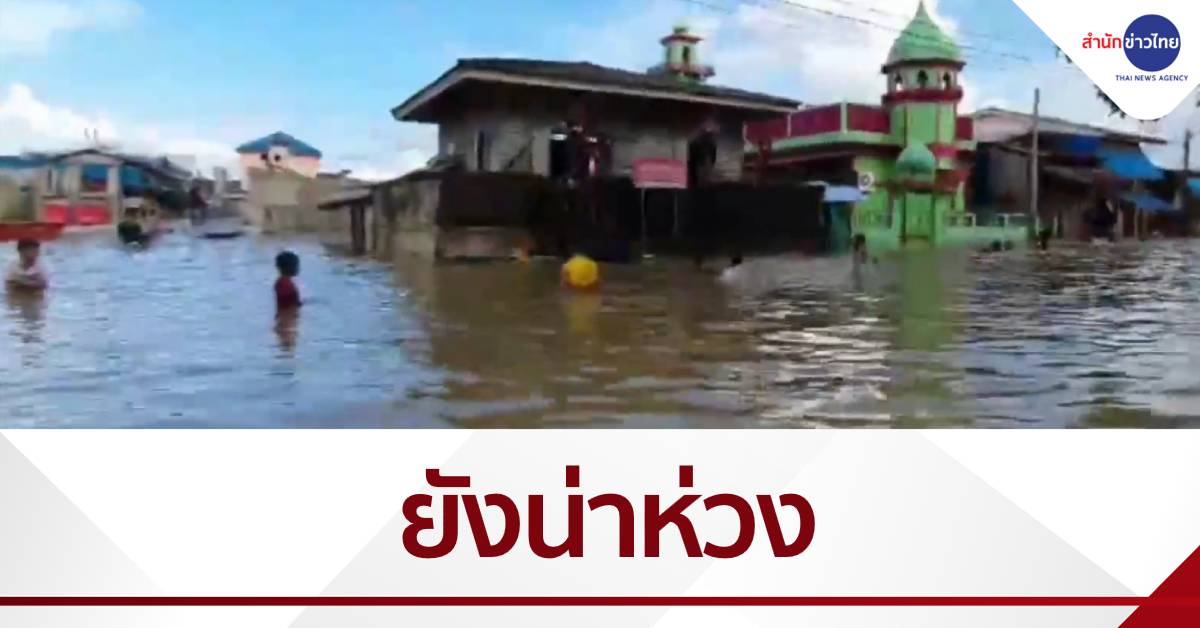 นราธิวาส 29 พ.ย.-สถานการณ์น้ำท่วมภาคใต้หลายพื้นที่เริ่มคลี่คลาย แต่บริเวณสองฝั่งแม่น้ำสุไหงโก-ลก จ.นราธิวาส ระดับน้ำยังสูง