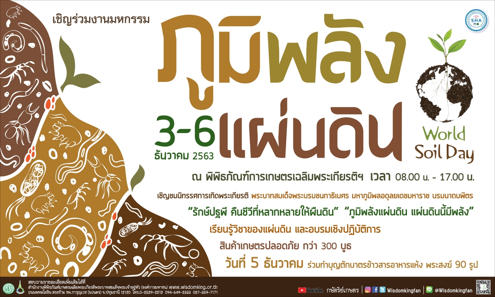 นางสาวสมพิศ วงศ์ปัญญา รักษาการแทนผู้อำนวยการสำนักงานพิพิธภัณฑ์เกษตรเฉลิมพระเกียรติพระบาทสมเด็จพระเจ้าอยู่หัว กล่าวว่า วันที่ 3-6 ธันวาคม 2563 ตั้งแต่เวลา 8.00-17.00 น. ที่ พิพิธภัณฑ์การเกษตรเฉลิมพระเกียรติฯ จ.ปทุมธานี เตรียมจัดงานมหกรรมภูมิพลังแผ่นดิน ประจำปี 2563 เพื่อน้อมรำลึกในพระมหากรุณาธิคุณพระบาทสมเด็จพระบรม ชนกาธิเบศร มหาภูมิพลอดุลยเดชมหาราช บรมนาถบพิตร ในหลวงรัชกาลที่ 9 เผยแพร่พระราชกรณียกิจด้านการพัฒนาทรัพยากรดินเพื่อการเกษตร ทรงมีพระมหากรุณาธิคุณ พระปรีชาสามารถด้านการพัฒนาและอนุรักษ์ทรัพยากรดินอย่างยิ่ง