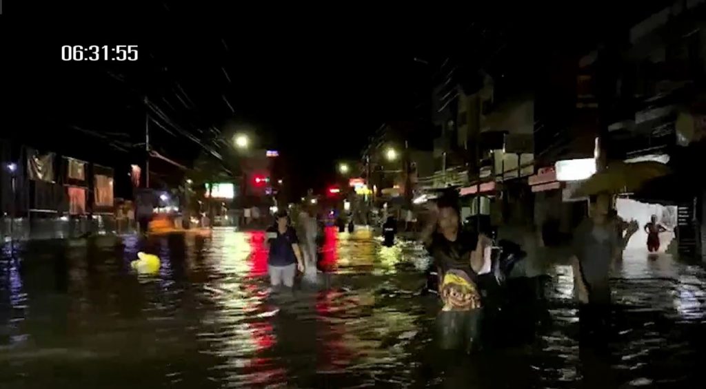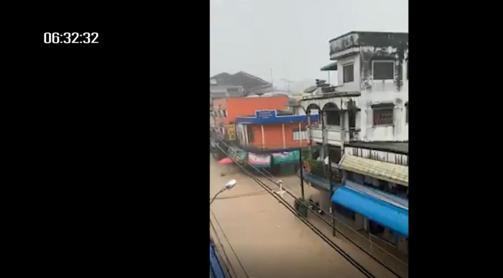 ด้านผู้ใช้เฟซบุ๊กชื่อว่า “Kanet Jongjit” โพสต์คลิปมวลน้ำกำลังไหลเข้าท่วมร้านค้าแห่งหนึ่งในอำเภอทุ่งสง ทำให้ข้าวของในร้านเสียหายกระจัดกระจายทั้งหมด ส่วนใหญ่เป็นของกินของใช้ที่อยู่ในร้าน