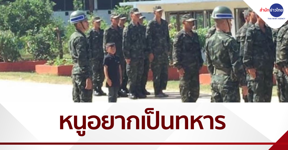 ผู้ใช้เฟซบุ๊กชื่อ “วิสาข์ สารศรี” โพสต์คลิปวิดีโอลูกชายวัย 8 ขวบ อยากเป็นทหาร เข้าไปร่วมฝึกกับพลทหารใหม่ ที่ค่ายพ่อขุนผาเมือง จ.เพชรบูรณ์ พร้อมระบุข้อความว่า “ใจมันรัก.บ่อรู้โตขึ้นสิดั้ยเป็นบ่อน้อ”