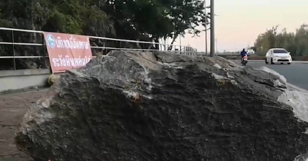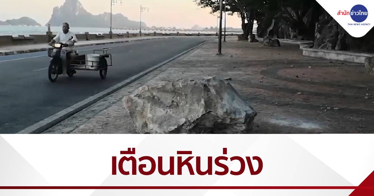 ประจวบคีรีขันธ์ 6 ธ.ค.-หินก้อนใหญ่ร่วงจากยอดเขาช่องกระจก จ.ประจวบฯ กระทบขอบปูนซีเมนต์ติดถนนเลียบชายทะเล เตือนประชาชนระวัง