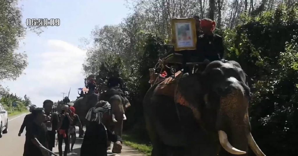 ชาวในควน ย่านตาขาว จ.ตรัง จัดขบวนช้าง 19 เชือก แห่ศพคุณยาย 89 ปี จากบ้านไปยังวัด เพื่อร่วมไว้อาลัยเป็นครั้งสุดท้าย ชาวบ้านตื่นตาจูงบุตรหลานมาดูและแห่ถ่ายรูปช้างตลอดสองข้างทางจำนวนมาก