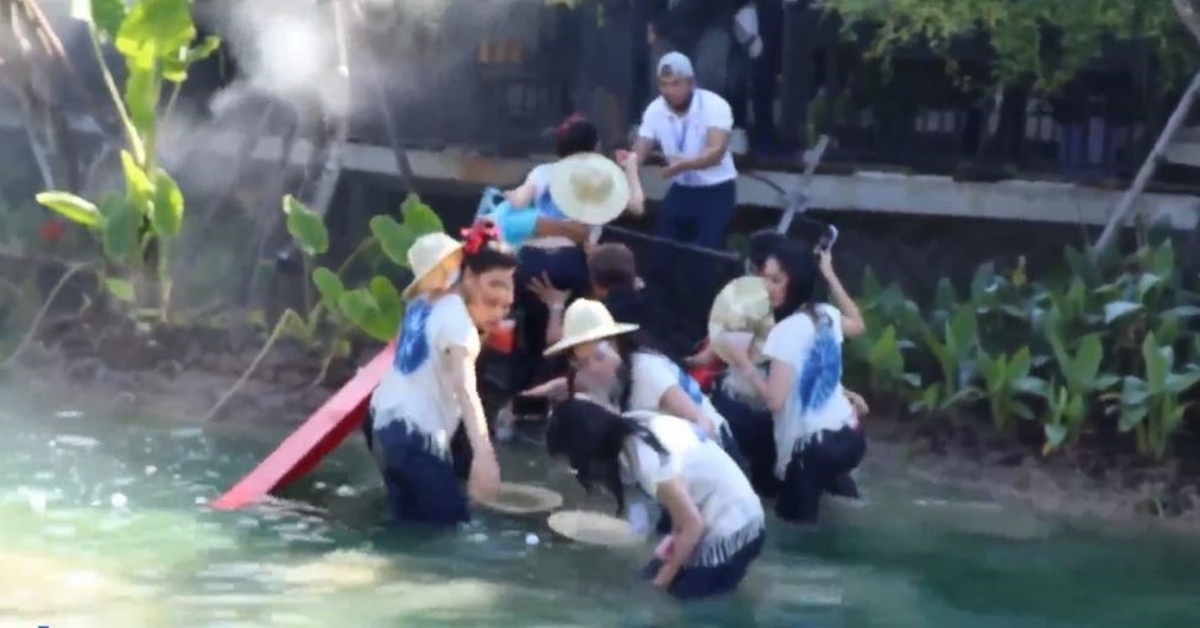 เพจออนไลน์ นิวส์ เชียงใหม่ เผยภาพวินาทีที่สาวงาม 30 คน ซึ่งอยู่ระหว่างการเก็บตัวที่ จ.เชียงใหม่ กำลังยืนโพสท่าถ่ายภาพบนสะพานแขวน ที่ปางเปาบีช อ.แม่แตง จ.เชียงใหม่ เมื่อช่วงสายวันนี้ (7 ธ.ค.) แต่สะพานรับน้ำหนักไม่ไหวได้เกิดทรุดตัวลง ส่งผลให้สาวงามผู้เข้าประกวดตกลงไปในน้ำพร้อมกัน จากเหตุการณ์ดังกล่าวส่งผลให้มีผู้บาดเจ็บหลายคน เจ้าหน้าที่และสตาฟฟ์กองประกวดได้ช่วยกันพยุงตัวผู้เข้าประกวดขึ้นจากน้ำ บางคนถูกอุ้มขึ้นไปปฐมพยาบาล โดยมีรถพยาบาลของโรงพยาบาลเชียงใหม่ราม มารับไปตรวจรักษาต่อในบางราย