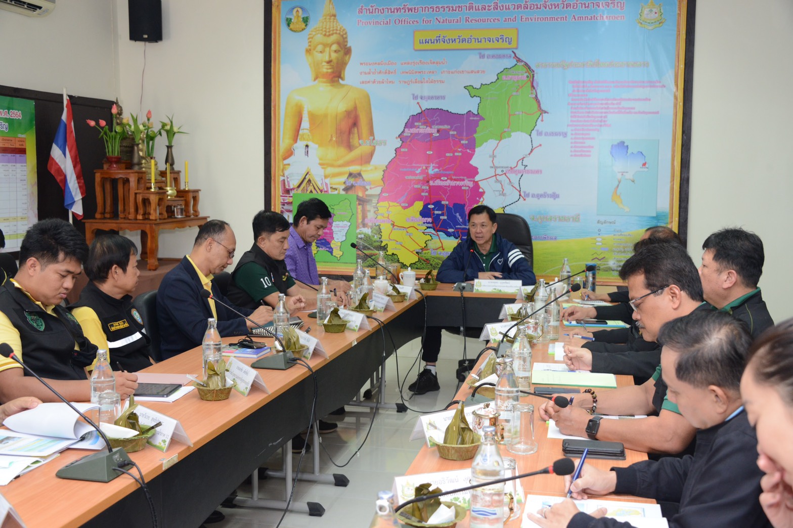 กระทรวงทรัพยากรธรรมชาติและสิ่งแวดล้อม โดยปลัดกระทรวงทรัพยากรธรรมชาติและสิ่งแวดล้อม ประชุมรับฟังปัญหาอุปสรรคในการดำเนินงานห้วงที่ผ่านมาของหน่วยงานภายใต้สังกัดกระทรวง พื้นที่ จ.อำนาจเจริญ โดยถ่ายทอดนโยบายของรัฐมนตรีว่าการกระทรวงทรัพยากรธรรมชาติและสิ่งแวดล้อม ให้กับหน่วยงานในพื้นที่ได้เป็นกรอบในการดำเนินงานในปีต่อไป โดยมีรองผู้ว่าราชการจังหวัดอำนาจเจริญ ให้การต้อนรับ