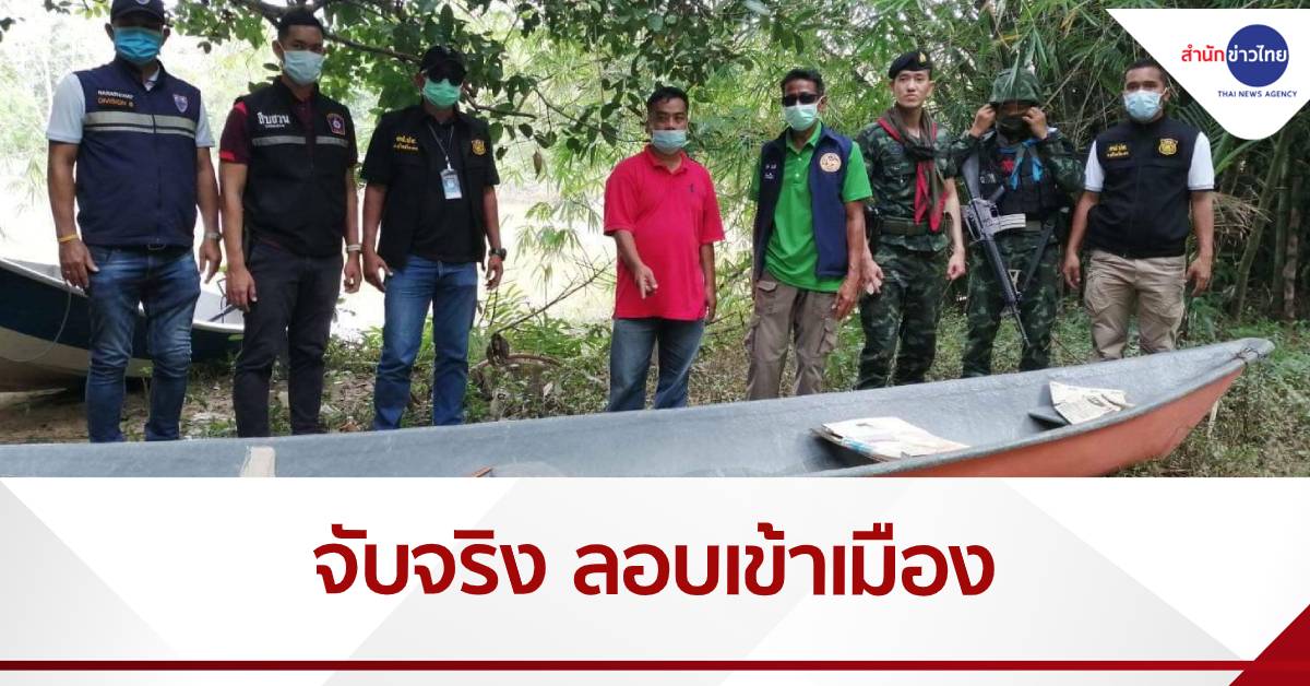 นราธิวาส 10 ธ.ค. – เอาจริง จับจริง กำลัง 3 ฝ่ายอำเภอสุไหงโก-ลก รวบต่างด้าวชาวมาเลเซีย ขณะล่องเรือขึ้นฝั่งหลบหนีเข้าเมืองที่ชายแดนนราธิวาส ส่งตัวดำเนินคดีตามกฎหมายทันที