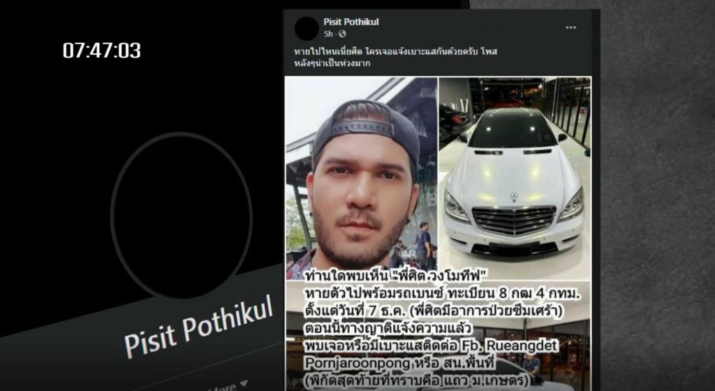 ล่าสุดวานนี้ (10 ธ.ค.) ผู้สื่อข่าวได้รับการเปิดเผยข้อมูลจาก ไกด์เข้ม (ชื่อในวงการนักร้อง) เพื่อนศิลปินนักร้องของ ศิต โมทีฟ ได้โพสต์ข้อความระบุว่า อดีตนักร้องดังติดต่อมาเพื่อขอพักผ่อนที่โครงการบ้านพักพูลวิลล่าของตนเอง ซึ่งตั้งอยู่ในหมู่บ้านบ่อฝ้าย อำเภอหัวหิน จังหวัดประจวบคีรีขันธ์ พร้อมกำชับว่าอย่าบอกใคร ขอพักผ่อนแบบส่วนตัวอย่ารบกวน ซึ่งตอนที่พบกับอดีตนักร้องดัง ก็พูดคุยกันตามปกติ มีบ่นเครียดบ้าง หลังพูดคุยกินกาแฟกัน จึงให้พนักงานเปิดบ้านให้และกำชับอย่ารบกวน จากนั้นก็ไม่คิดอะไร ก็เดินทางไปร้องเพลงที่บุรีรัมย์ จนกระทั่งทราบข่าวจากโซเชียลว่า ศิต โมทีฟหายตัวไป ติดต่อไม่ได้ ตนเองจึงได้ติดต่อกลับไปหาพนักงานที่ดูแลบ้านพัก ทราบว่า ศิต โมทีฟ ปิดบ้านเงียบ ไม่ออกจากบ้านเลยตั้งแต่วันที่ 7 ธันวาคม ซึ่งมีความผิดปกติ และเห็นข่าวในโซเชียล จึงเป็นห่วง ได้ติดต่อต้นสังกัดของ ศิต โมทีฟ ซึ่งพวกเขากำลังเดินทางมา