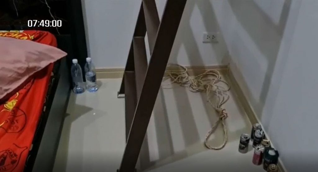 จากการตรวจสอบภายในห้องพัก พบเขียนข้อความตัดพ้อ และมีเชือกวางกองอยู่ โชคดีที่พบตัวอดีตนักร้องดังเสียก่อน หากไม่รีบช่วยเหลือ ไม่แน่ว่าจะเกิดเรื่องร้ายแรงกว่านี้หรือไม่ เบื้องต้นคาดว่า อดีตนักร้องดังอาจกินยาแก้แพ้เกินขนาด