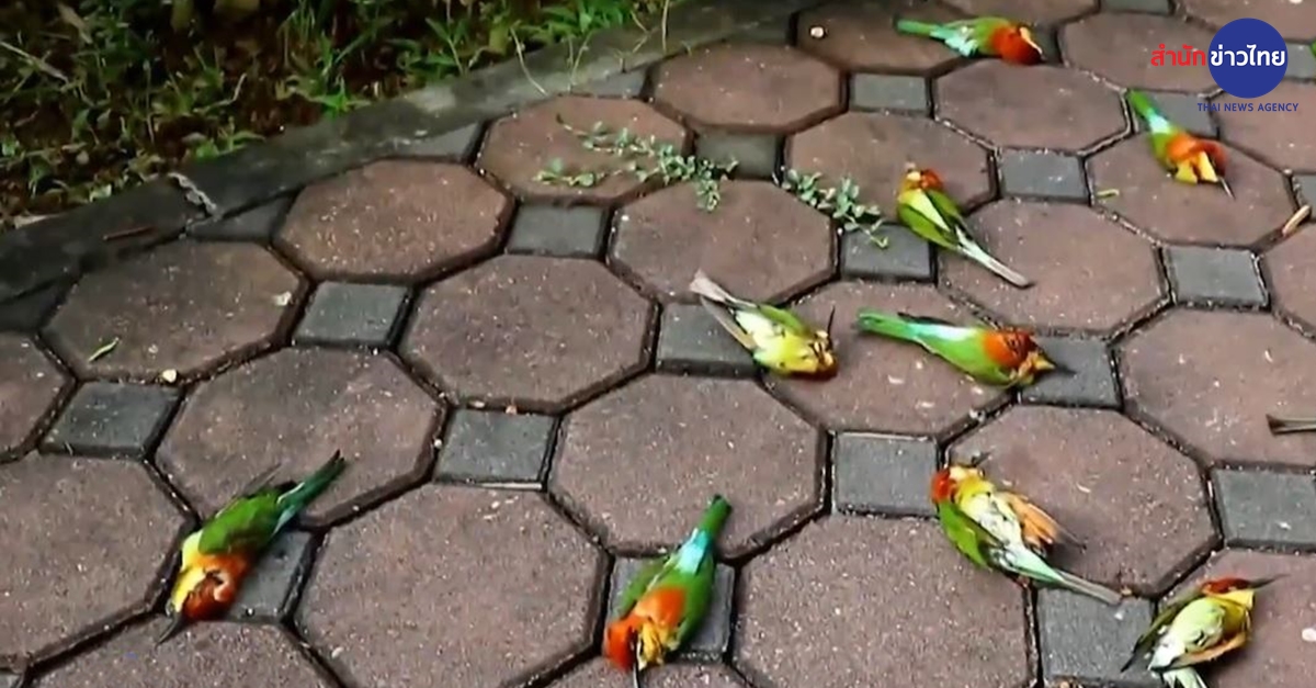 นี่เป็นภาพนกสวยงามจำนวนมากที่ตกลงมาตายเกลื่อนสำนักงานการไฟฟ้าส่วนภูมิภาคจังหวัดพังงา หมู่ 3 ต.ถ้ำน้ำผุด อ.เมืองพังงา นายพลศักดิ์ สวัสดี ผู้จัดการการไฟฟ้าส่วนภูมิภาคจังหวัดพังงา ให้ข้อมูลเพิ่มว่า เจ้าหน้าที่พบซากฝูงนกสีสันสวยงาม ลักษณะของตัวนกคล้ายนกกระจาบ มีสีเหลือง ส้ม และเขียว ตายเกลื่อนทั้งบริเวณพื้นและสนามหญ้าข้างสำนักงานฯ บางส่วนมีฝูงมดมารุมกินซากด้วย