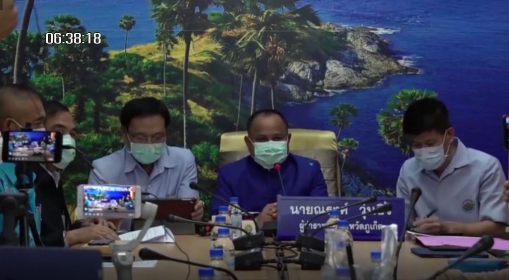 ส่วนที่ภูเก็ต นายณรงค์ วุ่นซิ้ว ผู้ว่าราชการจังหวัดภูเก็ต แถลงข่าวพบผู้ติดเชื้อเป็นชายอายุ 40 ปี มีประวัติเดินทางไปเกาะลันตาจังหวัดกระบี่ ในวันที่ 10 ธันวาคม เพื่อไปร่วมกิจกรรมกับกลุ่มเพื่อน ซึ่งหนึ่งในนั้นเป็นเพื่อนที่มาจากจังหวัดสมุทรสาคร มีการสัมผัสใกล้ชิดกอดและจับมือกันโดยไม่สวมหน้ากากอนามัย และภายหลังพบว่าบุคคลดังกล่าวมีการยืนยันว่าเป็นผู้ที่ติดเชื้อ ต่อมาในวันที่13 ธ.ค. ผู้ป่วยเดินทางกลับจังหวัดภูเก็ตและได้ทำงานที่ร้านโดยไม่สวมหน้ากาก และในวันที่ 16 เริ่มมีอาการป่วย และทราบข่าวว่าเพื่อนติดเชื้อจึงตัดสินใจไปตรวจที่โรงพยาบาลวชิระภูเก็ตในวันที่19 ธ.ค. กระทั่งพบว่าติดเชื้อ