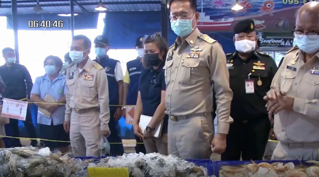 ส่วนประวัติการเดินทางของชายอายุ 57 ปี พ่อค้าอาหารทะเล ที่ไปรับซื้อมาจากตลาดมหาชัยมาโดยตลอดแทบทุกวัน หรือ 1-2 วันครั้ง โดยเดินทางใกล้ชิดกับลูกชาย 1 คน และคนงานลูกจ้างอีก 7 คน ครั้งล่าสุดคือ เมื่อวันที่ 18 ธันวาคม ที่ผ่านมา ก่อนนำอาหารทะเลทั้งกุ้งสดและปลาหมึก ไปเปิดแผงขายตามตลาดนัดหลายแห่ง ทั้งในเขต อ.ชุมพวง อ.ห้วยแถลง อ.จักราช จ.นครราชสีมา รวมถึงเขต อ.ลำปลายมาศ จ.บุรีรัมย์
