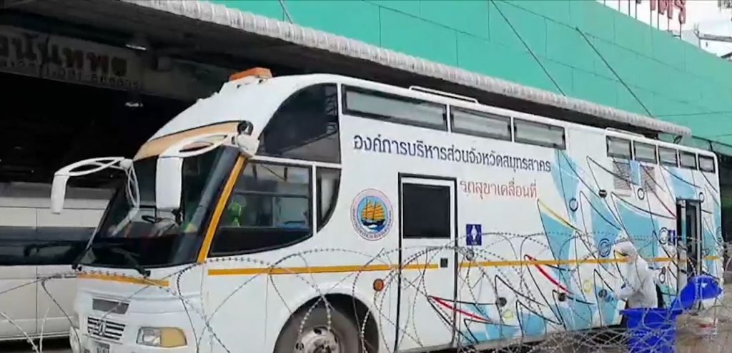 บรรยากาศเช้าวันนี้ที่ตลาดกลางกุ้ง จังหวัดสมุทรสาคร เจ้าหน้าที่ตำรวจ-ทหาร มาร่วมดูแลความสงบ นอกจากนี้ได้เตรียมการเพื่อตั้งเป็นโรงพยาบาลสนาม มีการนำเต็นท์มากางทำเป็นศูนย์อำนวยการโรงพยาบาลสนาม พร้อมเตรียมทำความสะอาดฆ่าเชื้อบริเวณรอบๆ และทาง อบจ.สมุทรสาคร นำรถสุขาเคลื่อนที่มาให้จำนวน 1 คัน เดิมตลาดกลางกุ้ง เป็นคลินิก 24 ชั่วโมง เพื่อรักษาแรงงานที่มีอาการจากการติดเชื้อโควิด-19 แล้วให้กลับที่พัก