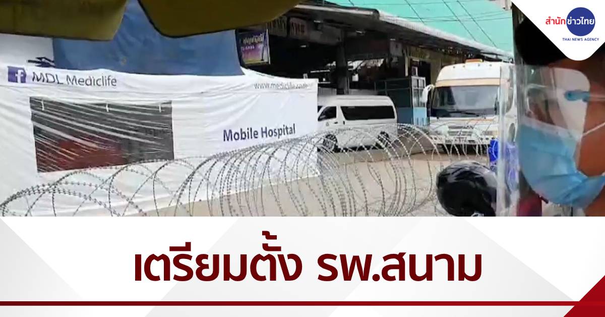 สมุทรสาคร 24 ธ.ค.-เจ้าหน้าที่เตรียมตั้งโรงพยาบาลสนาม จุดแรกที่ตลาดกลางกุ้ง มีบุคลากรสาธารณสุขจาก รพ.บำราศนราดูร มาประจำการ หากรายใดอาการหนัก จะส่งต่อไปโรงพยาบาล