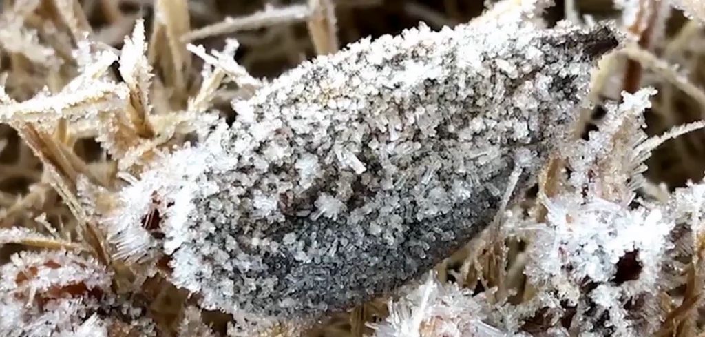 เชียงใหม่ 25 ธ.ค.-ยอดดอยอินทนนท์ ยังหนาวเย็น เช้านี้บริเวณกิ่วแม่ปาน อุณหภูมิลดลงเหลือ 2 องศาฯ เกิดน้ำค้างแข็งตามยอดหญ้าเป็นเกล็ดน้ำแข็งใสเล็กๆ ขาวโพลนทั่วยอดดอย