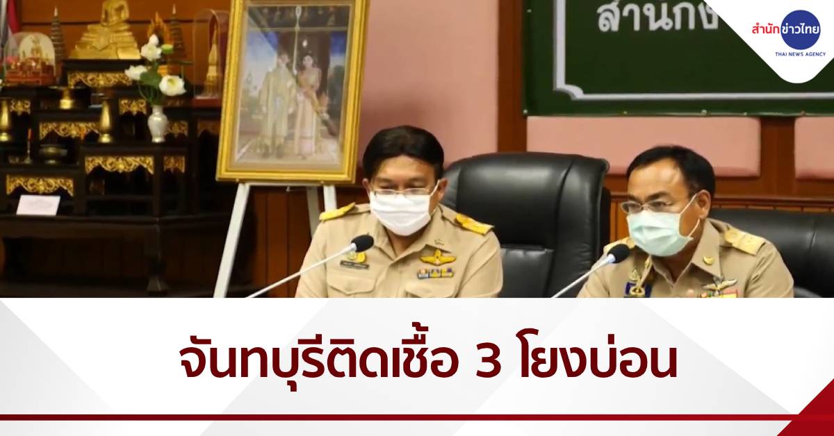 ที่จังหวัดจันทบุรี ผลยืนยันจากห้องแล็บ พบผู้ติดเชื้อ 3 คน รายแรกเป็นชายไทยอายุ 34 ปี รายที่ 2 เป็นหญิงไทยอายุ 53 ปี และรายที่ 3 เป็นชายไทยอายุ 54 ปี ตอนนี้ทั้ง 3 คนอยู่ในการดูแลของแพทย์อย่างใกล้ชิด จากการสอบสวนเบื้องต้น ทราบว่า 2 รายแรก มีประวัติสัมผัสกลุ่มเสี่ยงบ่อนพนันระยอง ส่วนอีก 1 รายไปทำงานที่จังหวัดระยอง ทั้งนี้ไทม์ไลน์อย่างละเอีนดของทั้ง 3 คน ทางสาธารณสุขจังหวัดกำลังสืบสวนติดตามโรค โดยทางจังหวัดจะมีการแถลงอีกครั้ง