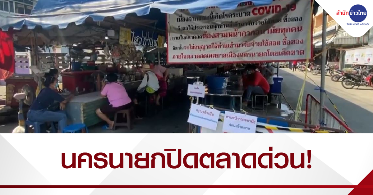 จ.นครนายก ออกประกาศชี้แจงข้อเท็จจริงกรณีการติดเชื้อโควิด-19 วันนี้ (29 ธ.ค.) ว่า พบผู้ติดเชื้อเพิ่ม 1 ราย รวมมีผู้ติดเชื้อ 3 ราย เป็นแรงงานต่างด้าวสัญชาติกัมพูชา เข้าเมืองถูกต้องตามกฎหมาย และมีใบอนุญาตทำงาน ทำอาชีพขายผักในตลาดสดเทศบาลเมืองนครนายก มีประวัติสัมผัสกับผู้ป่วยรายแรก โดยไทม์ไลน์ของผู้ติดเชื้อรายที่ 3 นี้ ระหว่างวันที่ 14-25 ธันวาคม เวลา 01.00-10.00 น. ทุกวัน จัดแผงผักและขายของที่ตลาดสดเทศบาลเมืองนครนายก ติดแผงอาหารทะเลของผู้ป่วยรายที่ 1, วันที่ 27 ธันวาคม ไปตรวจหาเชื้อที่โรงพยาบาล, วันที่ 28 ธันวาคม ไปจัดแผงผักขายของตามปกติ กระทั่งวันนี้ ผลตรวจพบติดเชื้อโควิด-19 จึงเข้ารับการรักษาที่โรงพยาบาลนครนายก ทำให้วันนี้ เทศบาลเมืองนครนายก ประกาศปิดตลาดด่วน และยังไม่มีกำหนดว่าจะเปิดเมื่อไหร่. – สำนักข่าวไทย
