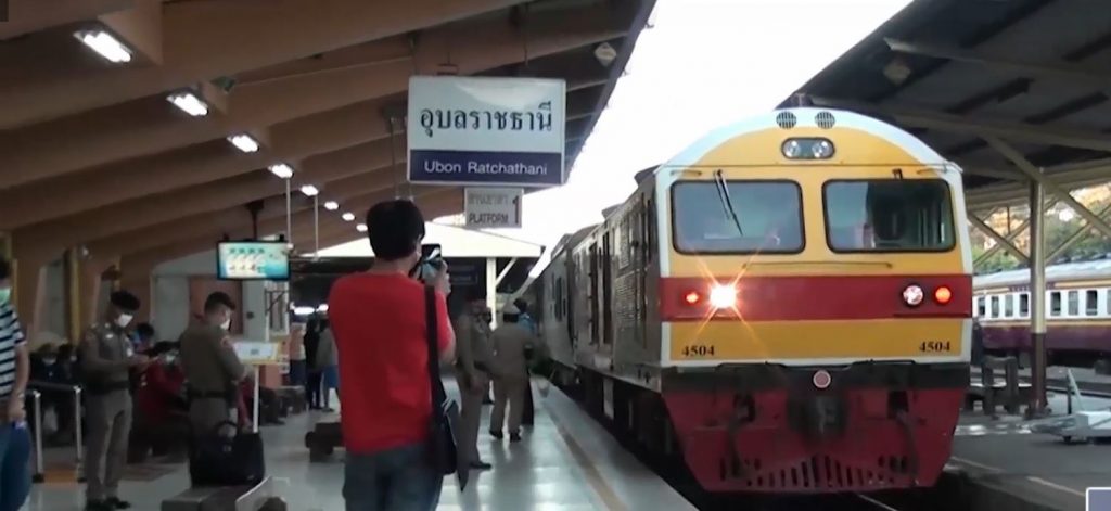 ส่วน จ.อุบลราชธานี บรรยากาศสถานีรถไฟอุบลราชธานี อำเภอวารินชำราบ ช่วงเช้าที่ผ่านมา มีประชาชนนักท่องเที่ยว ผู้ใช้แรงงานเดินทางเข้าพื้นที่ อย่างแน่นขนัดท่ามกลางระบบมาตราการคัดกรองป้องกันโรคโควิด-19 โดยผู้โดยสารทุกคนจะต้องทำการลงชื่อ หรือสแกนแอปพลิเคชันไทยชนะ ตรวจวัดอุณหภูมิร่างกายก่อนเข้าออกในพื้นที่สถานี โดยสถานีรถไฟจังหวัดอุบลราชธานี ตั้งจุดคัดกรองตรวจวัดอุณหภูมิ บริการเจลแอลกอฮอล์แก่ผู้โดยสาร พร้อมกับประชาสัมพันธ์เกี่ยวกับการป้องกันตนเองผ่านช่องทางต่างๆ พร้อมให้ทำความสะอาดสถานีรถไฟ ขบวนรถโดยสาร สถานที่จำหน่ายตั๋วโดยสาร ที่พักผู้โดยสาร สถานที่ให้บริการ ด้วยน้ำยาฆ่าเชื้อ หรือแอลกอฮอล์ทุกๆ 2 ชั่วโมง และฉีดพ่นน้ำยาฆ่าเชื้อขบวนรถโดยสารทั้งสถานีต้นทางและปลายทางทุกครั้ง