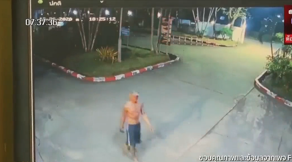 ภายหลังรับแจ้ง ตำรวจสายตรวจไปยังที่เกิดเหตุทันที และพบชายไม่สวมเสื้อ สวมเพียงกางเกงสีดำ ถือมีดดาบแกว่งไปมา เมื่อผู้ก่อเหตุเห็นรถตำรวจจึงกระโดดเข้าใส่เกาะบนฝากระโปรงรถ ใช้มีดดาบฟันที่หน้ากระจกรถหลายครั้ง ตำรวจจึงพยายามขับรถสะบัดเพื่อให้คนร้ายตกจากรถแต่ไม่เป็นผล ทำให้ผู้ก่อเหตุยิ่งคลั่งหนักกว่าเดิม โยกตัวไปด้านข้างพยายามที่จะฟันเจ้าหน้าที่ที่ขับรถ ตำรวจจึงได้ใช้อาวุธปืนประจำกายยิงเพื่อข่มขู่ ไป 1 นัด ทำให้ผู้ก่อเหตุตกใจกระโดดลงวิ่งหลบหนีเข้าไปภายในบ้านพัก ซึ่งอยู่ด้านหน้าโรงพยาบาลฯ