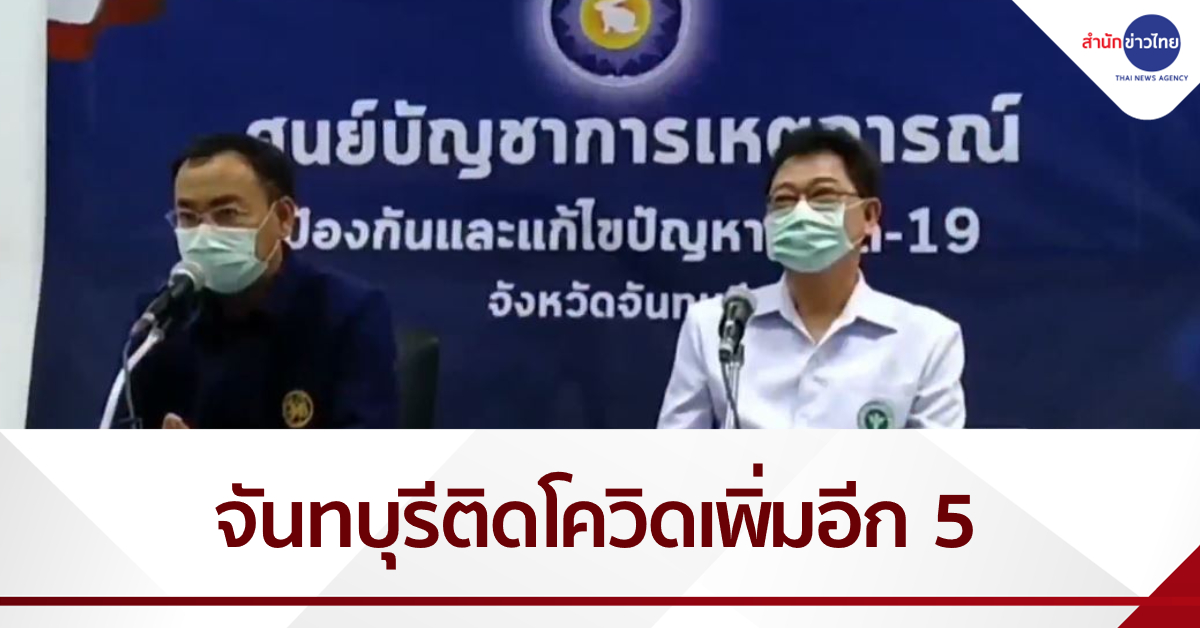 นายสุธี ทองแย้ม ผู้ว่าราชการจังหวัดจันทบุรี พร้อมด้วยนายแพทย์สาธารณสุขจังหวัด แถลงข่าวพบผู้ติดเชื้อโควิด-19 ในพื้นที่เพิ่มอีก 5 คน ทำให้ขณะนี้ยอดผู้ป่วยสะสมพุ่งไปถึง 15 คน