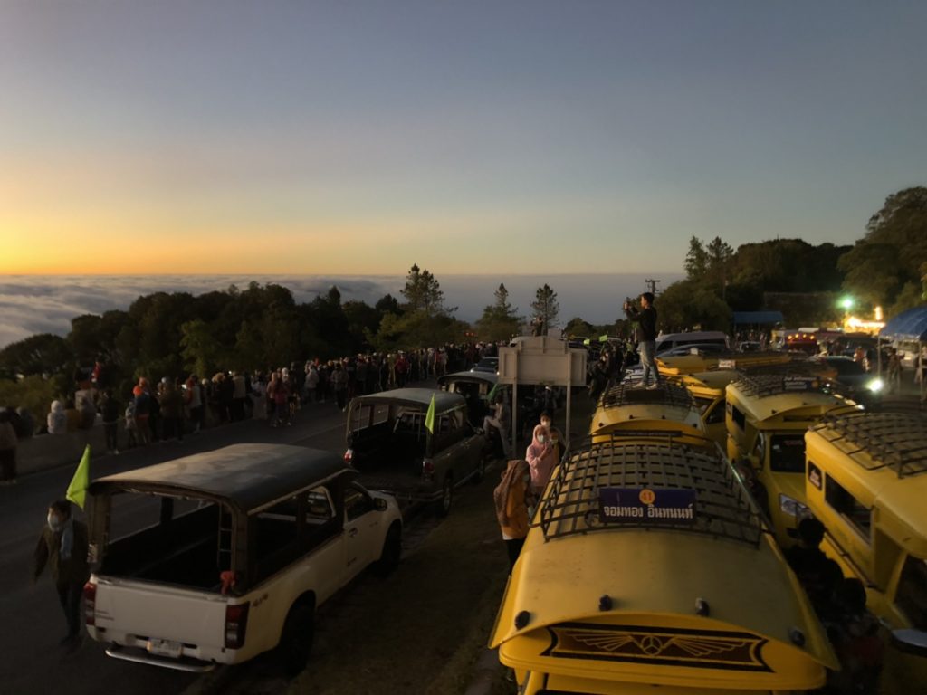 เช้าวันนี้ นักท่องเที่ยวแห่ขึ้นไปชมแสงแรกของปี 2564 บนดอยอินทนนท์เชียงใหม่กันอย่างคึกคัก จนลานจอดรถบริเวณกิ่วแม่ปานแน่นขนัด เจ้าหน้าที่อุทยานแห่งชาติดอยอินทนนท์บันทึกภาพไว้ ดวงอาทิตย์ส่องแสงสวยงามพร้อมกับทะเลหมอกผืนใหญ่ ท่ามกลางอากาศที่หนาวเย็น อุณหภูมิต่ำสุดเช้านี้อยู่ที่ 2 องศาเซลเซียส