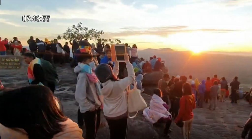 โดยในปีนี้พระอาทิตย์ขึ้นเวลา 06.29 น. ทำให้นักท่องเที่ยวที่ขึ้นมารอชมพระอาทิตย์ขึ้นแนวขอบฟ้าตัดกับแม่น้ำโขง ประทับใจกับความสวยงามของแสงแรกสีส้มสดใสของปี 2564.-สำนักข่าวไทย