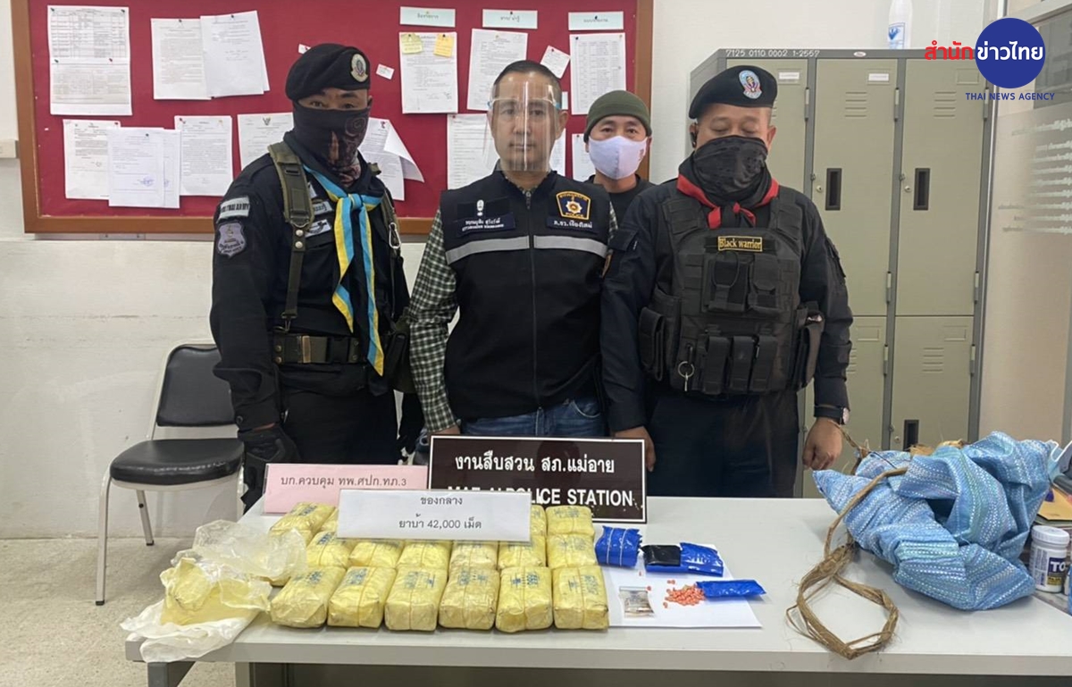 เมื่อเวลา 10.00 น. วันนี้ (2 ม.ค.) พ.อ.เอกวุฒิ สุขรส ผบ.บก.ควบคุม ทพ.ศปก.ทภ.3 ได้สั่งทุกหน่วยออกปฏิบัติการในพื้นที่ชายแดน โดยสั่งการให้ ร.อ.เจริญศักดิ์ บุตรวงศ์ หน.สยก.บก.ควบคุม ทพ.ศปก.ทภ.3 จัดการวางแผนการทำงานในชายแดน ให้ ร.อ.เผด็จ ชัยฤทธิ์ ผบ.ร้อย.ฉก.ทพ.3306 และ ร.ต.สุเวช เก็บพิมาย รอง ผบ.ร้อย.ฉก.ทพ.3306 นำกำลังปฏิบัติการที่บ้านดอยแหลม หมู่ 13 ต.แม่อาย อ.แม่อาย จ.เชียงใหม่ พบกลุ่มบุคคลไม่ทราบฝ่าย ประมาณ 3 คน แบกสัมภาระเดินเท้ามาตามเส้นทางในภูมิประเทศ หน่วยจึงได้แสดงตัวเพื่อขอตรวจค้น แต่กลุ่มบุคคลดังกล่าว เมื่อเห็นเจ้าหน้าที่ได้วิ่งหลบหนี และไม่สามารถติดตามตัวได้ทัน ซึ่งเป็นพื้นที่ติดต่อประเทศเมียนมา เจ้าหน้าที่ชุดปฏิบัติการจึงเข้าตรวจสอบพื้นที่ดังกล่าว พบเป้ (ดัดแปลง) จำนวน 1 เป้ จากการตรวจสอบพบเป็นยาเสพติดให้โทษประเภทที่ 1 (ยาบ้า) จำนวน 21 มัด รวม 42,000 เม็ด จึงได้นำส่งพนักงานสอบสวน สภ.แม่อาย จ.เชียงใหม่ เพื่อดำเนินคดีตามกฎหมายต่อไป. – สำนักข่าวไทย