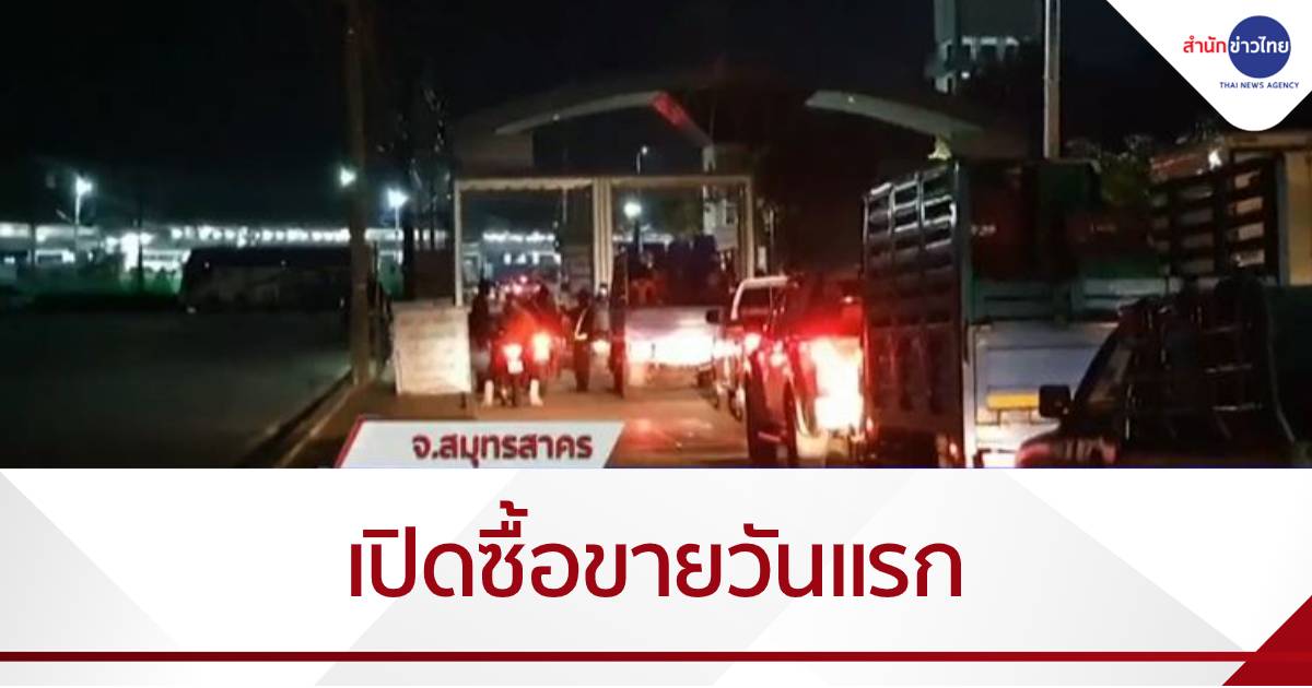 ผู้สื่อข่าว สำนักข่าวไทย ลงพื้นที่ตรวจสอบบรรยากาศตลาดทะเลไทย ถนนพระราม 2 ตำบลท่าจีน อำเภอเมืองสมุทรสาคร ซึ่งเป็นตลาดกลางซื้อ-ขายสัตว์น้ำที่ใหญ่ที่สุดของประเทศ ซึ่งช่วงแรกเป็นการเปิดขายปลาในแพปลาต่างๆ ตั้งแต่เวลา 06.00-12.00 น. มีการตรวจเข้มด้วยการอนุญาตให้เฉพาะผู้ที่ผ่านการตรวจเชื้อ “โควิด-19” และไม่พบเชื้อ จึงจะสามารถเข้าไปซื้อของในตลาดได้ ถ้าหากไม่มีหนังสือรับรองว่าไม่ติดเชื้อ จะไม่ได้รับอนุญาต ภาพรวมพบผู้ซื้อ-ขายปลาทยอยเข้ามาอย่างต่อเนื่อง แต่หากเจ้าหน้าที่พบว่ายังไม่ผ่านการตรวจหาเชื้อ วัดอุณหภูมิไม่ผ่าน หรือไม่มีบัตรผ่านจะต้องวนรถออกทันที