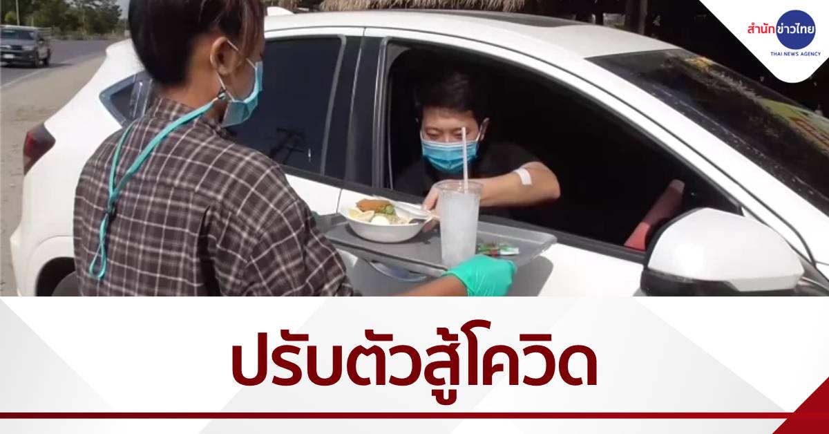 อ่างทอง 4 ม.ค.- ร้านก๋วยเตี๋ยวทางโค้ง ต.โรงช้าง อ.ป่าโมก จ.อ่างทอง ปรับตัวสู้โควิด-19 ให้ลูกค้านำรถมาจอดรับประทานที่ร้าน กิน เสิร์ฟ จ่ายเบ็ดเสร็จในที่เดียว ลดการเสี่ยงต่อการแพร่ระบาดของไวรัส