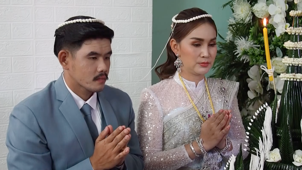 สำหรับเจ้าบ่าวชื่อ นายณัฐวัฒน์ เภาวฤทธิ์ หรือเต้ เป็นเจ้าของร้านคาร์แคร์ล้างรถ ส่วนเจ้าสาวประเภทสองชื่อ นายพลอยปภัส ศรีแก่นจันทร์ หรือศรีแม่ค้าในตลาดสดมหาสารคาม ซึ่งทางฝ่ายเจ้าบ่าวได้จัดเตรียมสินสอดจำนวนเงิน 300,000 บาท ทองคำหนักรวม 7 บาท มาสู่ขอซึ่งมีแขกเหรื่อในหมู่บ้าน ทั้งแขกของเจ้าบ่าวและเจ้าสาวมาร่วมงานเป็นสักขีพยานรักในครั้งนี้กันอย่างคึกคักและอบอุ่นเป็นอย่างยิ่ง
