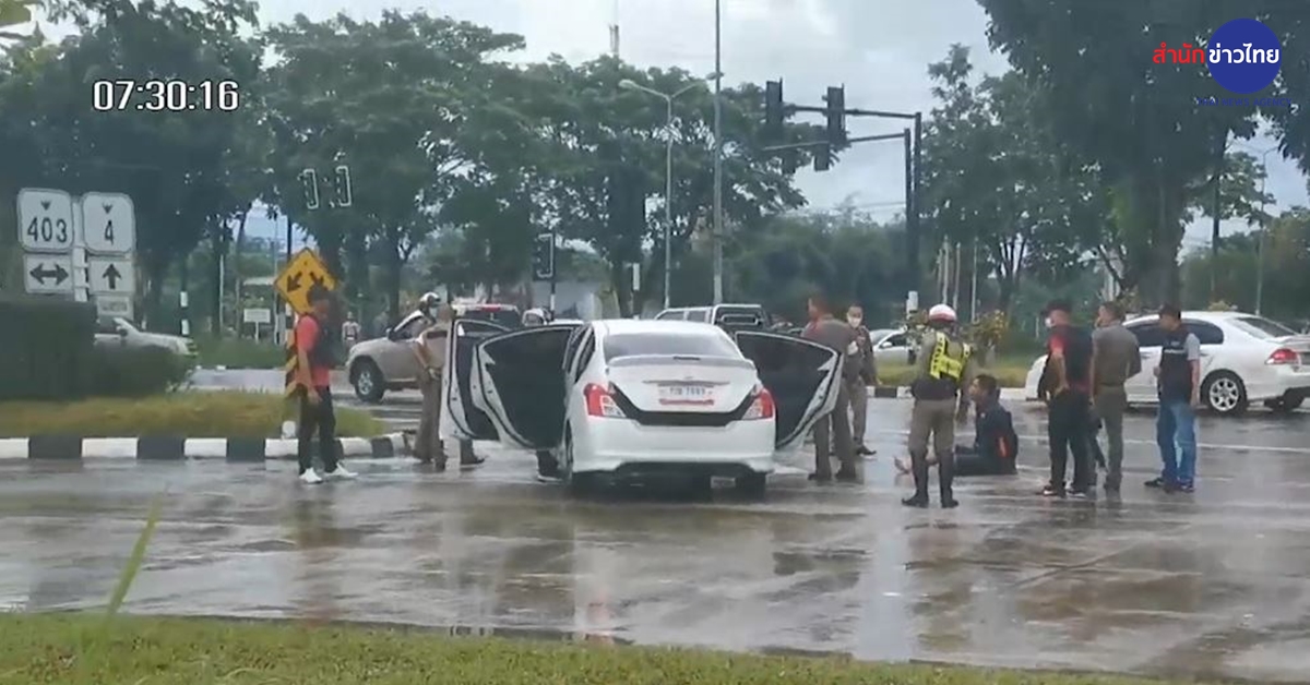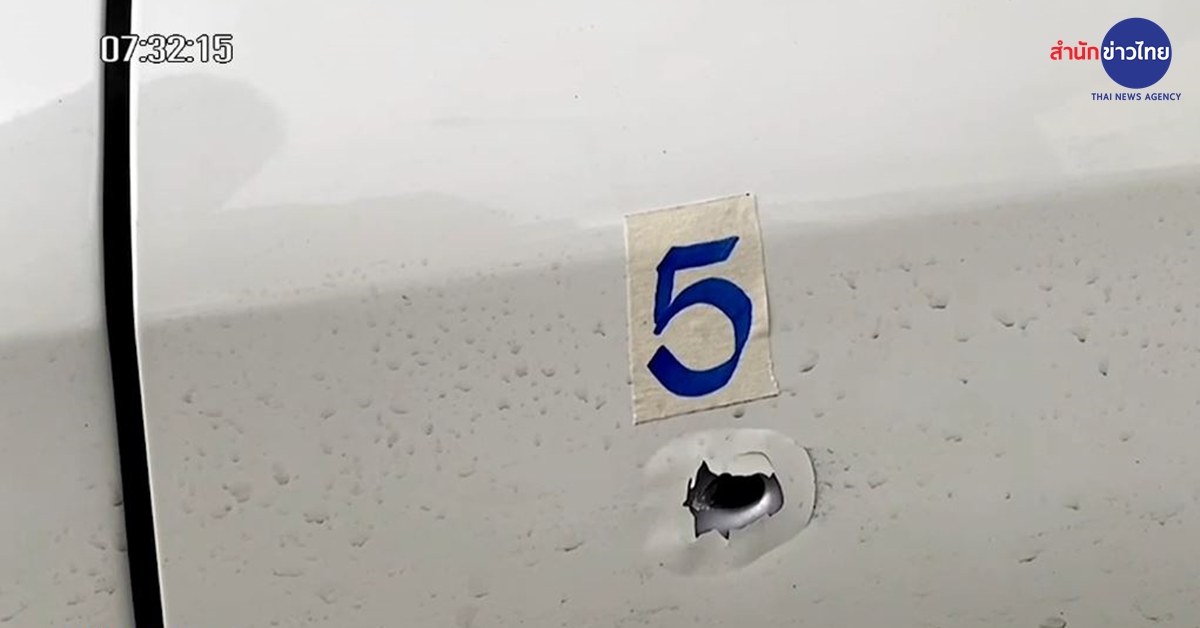 นี่เป็นภาพเหตุการณ์ขณะตำรวจเข้าเคลียร์พื้นที่ หลังปฏิบัติการยิงสกัดรถที่คาดว่าเป็นของคนร้าย บริเวณสี่แยกอันดามัน ต.เขากอบ อ.ห้วยยอด จ.ตรัง โดยรถมีร่องรอยคมกระสุนเจาะเข้าหลายจุด ยางล้อหลังแตกทั้ง 2 เส้น