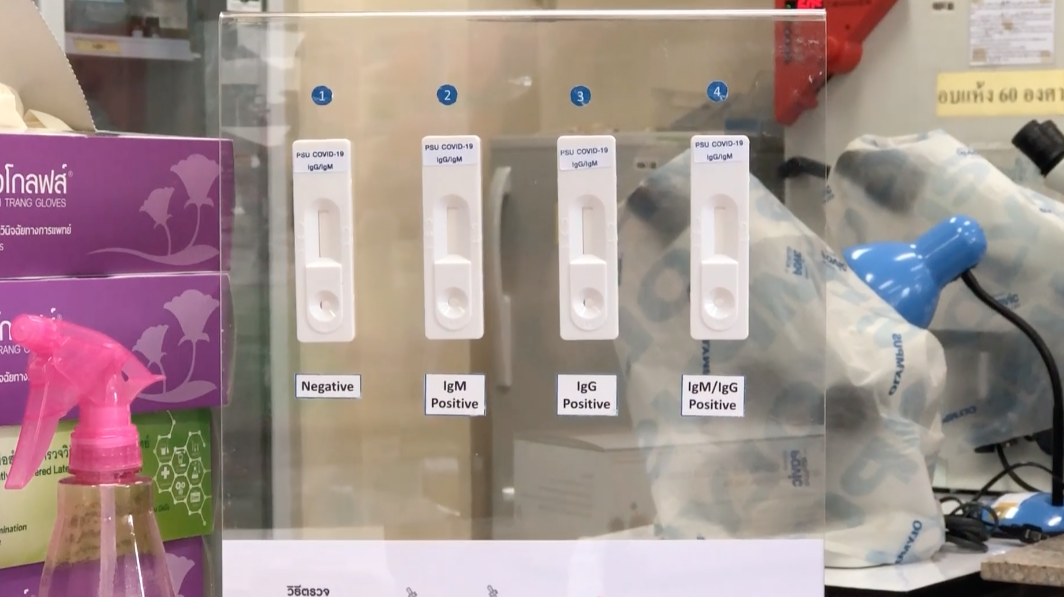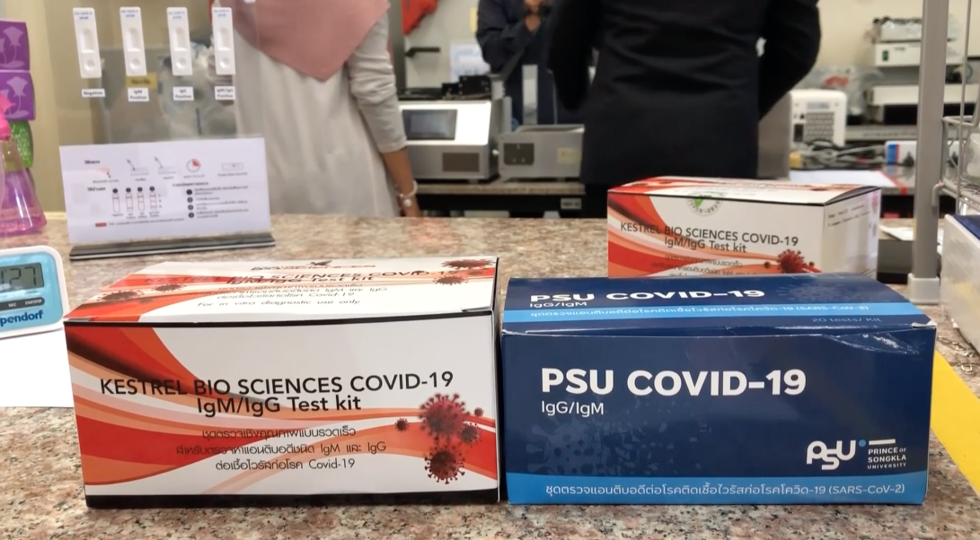 ที่มหาวิทยาวิทยาลัยสงขลานครินทร์ หรือ ม.อ.ทีมนักวิจัยคณะเทคนิคการแพทย์ นำโดย ผศ.ดร.ธีรกมล เพ็งสกุล คณะเทคนิคการแพทย์ ม.อ. และบริษัท มาสเตอร์ แล็บส์ อินคอร์ปอเรชั่น บริษัท เคสเทรล ไบโอ ไซเอ็นซ์ (ประเทศไทย) เปิดเผยผลการวิจัยและพัฒนาเทคโนโลยีชุดตรวจโควิด-19 ภายใต้ชื่อ “KBS COVID-19” เป็นผลสำเร็จหลังใช้เวลาอยู่นานเกือบ 1 ปีเต็ม และได้รับการอนุญาตจากสำนักคณะกรรมการอาหารและยา หรือ อย. เมื่อช่วงปลายปีที่ผ่านมา ปัจจุบันชุดตรวจนี้ สามารถส่งให้โรงพยาบาลสาธารณสุข และหน่วยงานที่เกี่ยวข้อง นำไปใช้ตรวจกลุ่มเสี่ยงการติดเชื้อโควิดได้แล้ว และมีผลการตรวจที่แม่นยำเช่นเดียวกับการตรวจหาเชื้อไวรัสทางตรงแบบ Swab หรือการเก็บตัวอย่างเนื้อเยื่อจากโพรงจมูก ซึ่งต้องใช้เวลาประมาณ 3-4 ชั่วโมง จึงจะรู้ผล