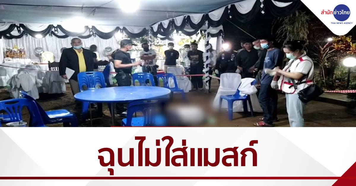 สืบเนื่องจากเมื่อเวลา 00.30 น.วันที่ 7 ม.ค.64 ในงานศพมีการตั้งเต็นท์จัดเลี้ยงแขกเหรื่อในงาน ก่อนเกิดเหตุมีแขกหลายสิบคนยังอยู่ในงาน ขณะที่นายสำราญ ผู้ตายนั่งอยู่ภายในเต็นท์หน้าหีบศพ และนายจำเนียร มือปืนเข้าไปถามว่า “คนเยอะๆ ทำไม ไม่ใส่แมสก์” ทำให้นายสำราญ ไม่พอใจจึงมีปากเสียงกันรุนแรงถึงขั้นด่าพ่อแม่กันอย่างดุเดือด จากนั้นนายจำเนียร เดินไปขี่รถ จยย.จะกลับบ้าน นายสำราญ ที่ยังไม่หายโกรธตามไปผลักอกนายจำเนียร จนรถ จยย.ล้มแล้วพูดว่า “…พกปืน แต่..ว่า…ไม่กล้ายิง” พอสิ้นคำพูด นายจำเนียร ชักปืนออกมายิงใส่นายสำราญ 1 นัดจนล้มฟุบสิ้นใจ ขณะเกิดเหตุมี ด.ต.เผด็จ เทพชู อยู่ในงานจึงเข้าจับกุมตัวนายจำเนียรไว้ได้ ก่อนจะควบคุมตัวไว้สอบปากคำและดำเนินคดีข้อหาฆ่าคนตายโดยเจตนา เบื้องต้น ผู้ต้องหารับสารภาพตลอดข้อกล่าวหา เจ้าหน้าที่จะได้ควบคุมตัวไว้เตรียมทำแผนประกอบคำรับสารภาพ และดำเนินคดีตามกฎหมายต่อไป.-สำนักข่าวไทย
