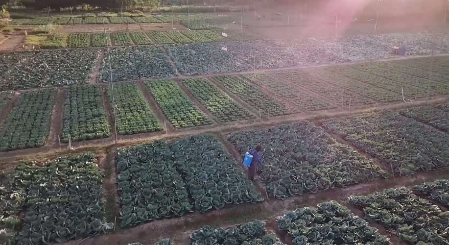 นี่เป็นภาพแปลงกะหล่ำที่เกษตรกรปลูกอยู่ริมแม่น้ำโขงในพื้นที่อำเภอธาตุพนม จังหวัดนครพนม จะเห็นว่าเริ่มโตใบใหญ่พร้อมที่จะเก็บเกี่ยวได้แล้ว เนื่องจากช่วงนี้สภาพอากาศยังคงหนาวเย็นต่อเนื่อง มีอุณหภูมิเฉลี่ยต่ำสุดที่ประมาณ 10 -12 องศาเซลเซียส ทำให้กะหล่ำปลีปลอดสารพิษของเกษตรกร โตเร็ว ใช้ระยะเวลาปลูกสั้น ประมาณ 3-4 เดือน สามารถเก็บผลผลิตขายสร้างรายได้สู้ภัยโควิด ถึงแม้จะราคาไม่สูงเฉลี่ยกิโลกรัมละ 8 -10 บาท แต่สภาพอากาศเช่นนี้ทำให้โตเร็ว สามารถทำเงินได้ไร่ละเกือบแสนบาท