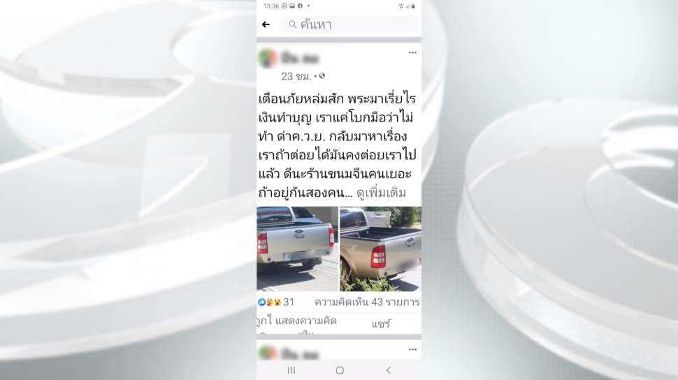 ผู้ใช้เฟซบุ๊กรายหนึ่งโพสต์ภาพรถยนต์กระบะพร้อมข้อความว่า “เตือนภัยหล่มสัก พระมาเรี่ยไรทำบุญเราแค่โบกมือว่าไม่ทำด่าคำหยาบ กลับมาหาเรื่องเรา ถ้าต่อยได้มันคงต่อยเราไปแล้ว” โดยมีผู้เข้ามาวิพากษ์วิจารณ์ แสดงความคิดเห็นจำนวนมาก ผู้สื่อข่าวจึงเดินทางไปพบกับ น.ส.เอ (นามสมมุติ) ผู้ใช้เฟซบุ๊กคดังกล่าวเล่าว่า ขณะที่ตนกำลังโทรศัพท์อยู่ที่บ้าน ได้มีพระเดินมายื่นถังและซองผ้าป่าให้ ตนจึงโบกมือลักษณะไม่รับ แต่พระรูปดังกล่าวก็ยืนจ้องมองตนอยู่สักพักตนจึงบอกว่าไม่ทำค่ะ พระรูปนั้นทำท่าทางโมโหพร้อมกับพูดให้ของลับและเดินออกไป ตนจึงโมโหบอกว่าพระพูดแบบนี้ได้อย่างไร พระรูปดังกล่าวหันกลับมาเหมือนจะทำร้าย ตนจึงรีบวิ่งเข้าบ้านไปหยิบโทรศัพท์เพื่อจะถ่ายภาพ แต่ก็ไม่ทันถ่ายได้แต่เพียงป้ายทะเบียนรถ